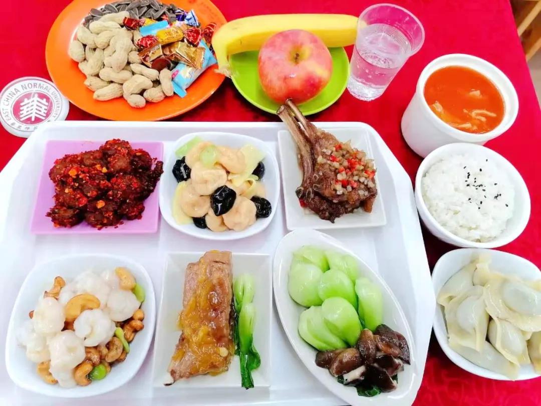 除夕夜,必不可少的一定是一顿暖心又暖胃的年夜饭。食堂的年夜饭会好吃吗?华东师大除夕菜单一公布,就有学生留言表示“早知道这样我就不回家了”。年夜饭套餐分普通餐和清真餐,各提供两种套餐供学生选择。六菜一汤,荤素搭配,配有饮料水果小食,高颜值让人垂涎欲滴。除夕夜十点,还有免费汤圆水饺供应。此外,留校学生正月初一至初三还可以免费享用花式繁多的美味餐点。