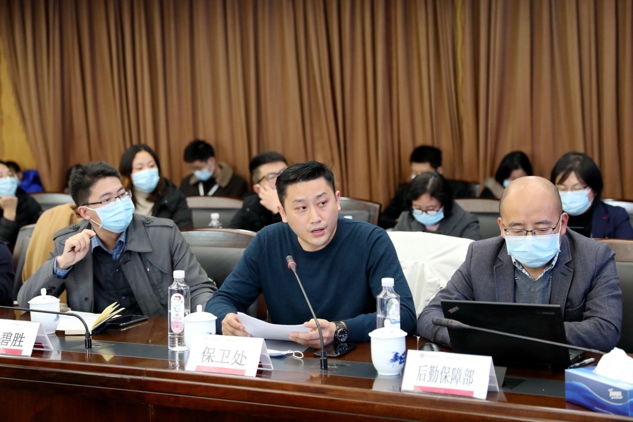 后勤保障部部长赵健、实验室安全管理办公室主任金之诚、保卫处副处长冯杰分别就分管领域安全工作开展情况进行总结汇报。