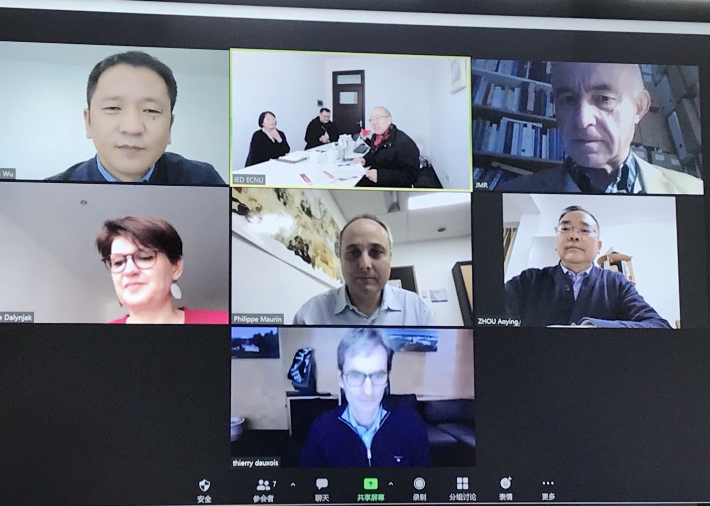 1月8日,中法社会与科学联合研究院(JoRISS)第十一次指导委员会会议在华东师大召开,受全球新冠肺炎疫情影响,本次会议采用线上视频会议方式进行。华东师大副校长周傲英,国际交流处处长、JoRISS项目中方总协调员周云轩,人文与社会科学研究院副院长吴文钰,科技处副处长饶昇苹,国际交流处副处长王素斌,法国里昂高师科研副校长Thierry DAUXOIS,JoRISS项目法方总协调员Jean-Michel ROY,里昂高师外办主任Phillippe MAURIN,里昂大学国际办公室负责人Severine DALYNJAK等参加会议。本次会议由JoRISS项目中方总协调员周云轩主持。