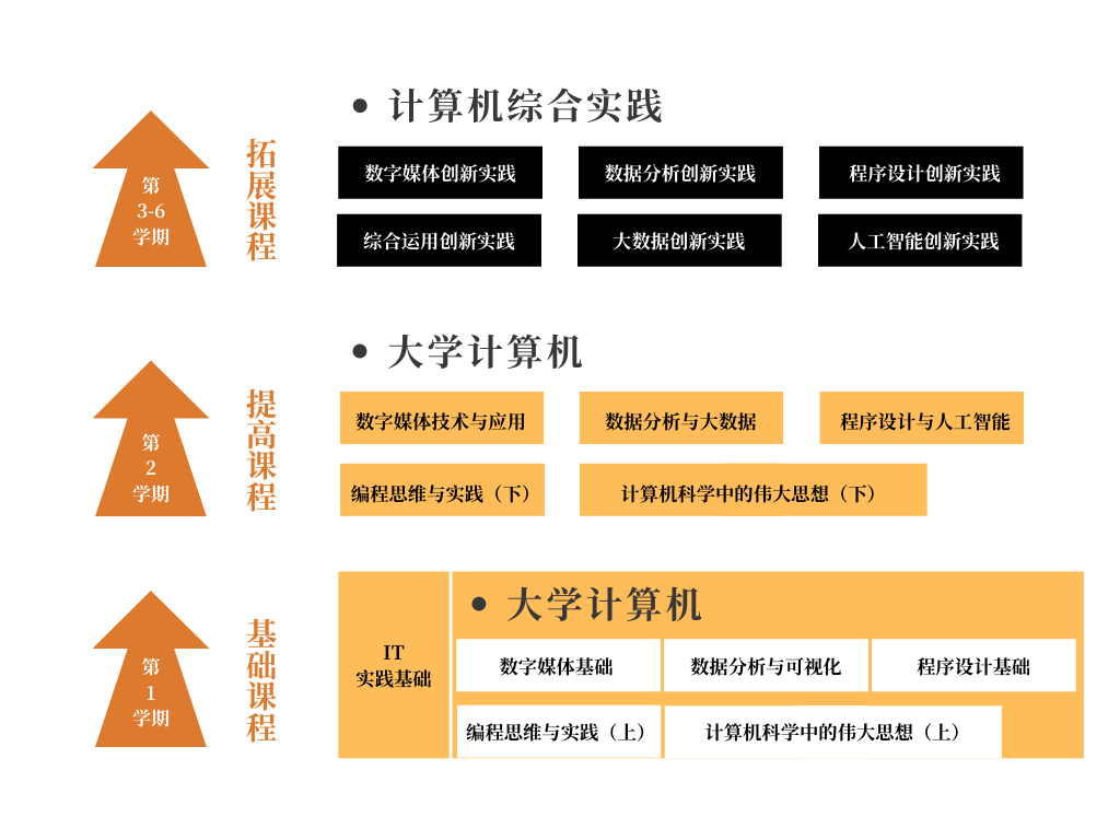 新的大学计算机基础培养体系强调编程思维、信息素养、数据能力、数字化协作与创新的全方位综合胜任力的提升,增加混合式学习模式的教学方法,利用自主研发的“水杉在线”数字化学习平台,将学生的知识点学习、代码实践、练习评测、互动答疑、综合创新等环节陆续在线化,并将学习行为数据进行集中与打通,为后续的精准个性化服务打好基础。另有多个计算机比赛等待同学们的参与。