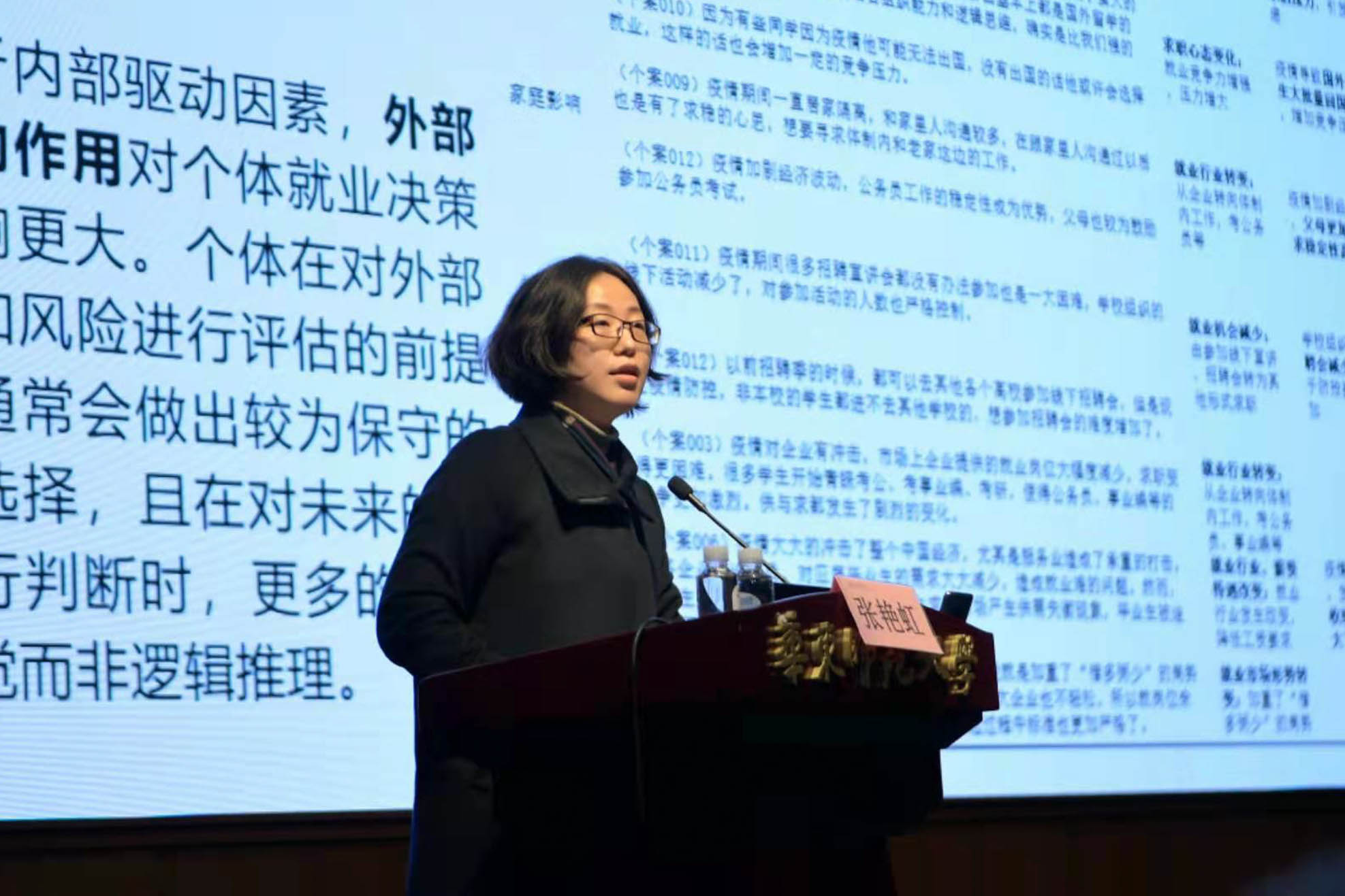 华东师大蒋瑾、张艳红、万姗姗、于国妮、杨亚星、刘曈、张春颖以及吉林大学孙月等8位与会嘉宾分别围绕疫情背景下高校毕业生从事科研助理岗位的接受程度影响因素、境外留学趋势变迁、就业选择行为探析、高校就业教育引导与学生思政工作的结合、生涯指导工作的提升等主题进行了交流发言。