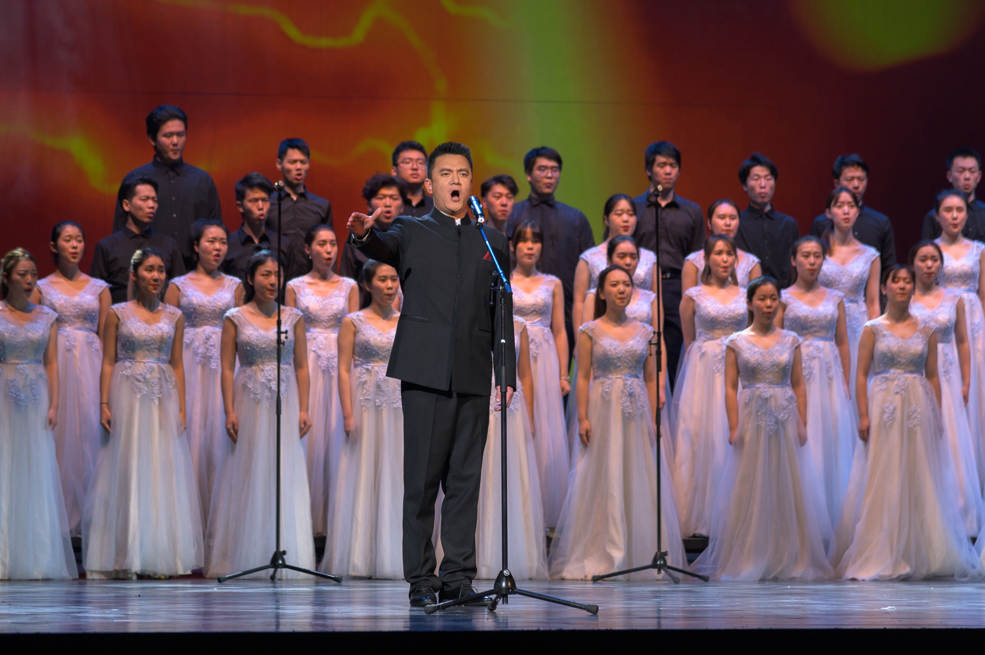 著名男高音歌唱家石倚洁先生的出场让整场音乐会的气氛达到了最高潮。这位在国际歌剧舞台上大放异彩的罗西尼男高音展现了对中国歌曲的超凡演绎,一首《鼓舞》震撼了在场的每一位观众,他的歌声如惊涛拍岸,极富穿透力,深深打动观众们的心,为在场观众们注入了一股强大的精神力量,鼓舞我们开启新的征程。