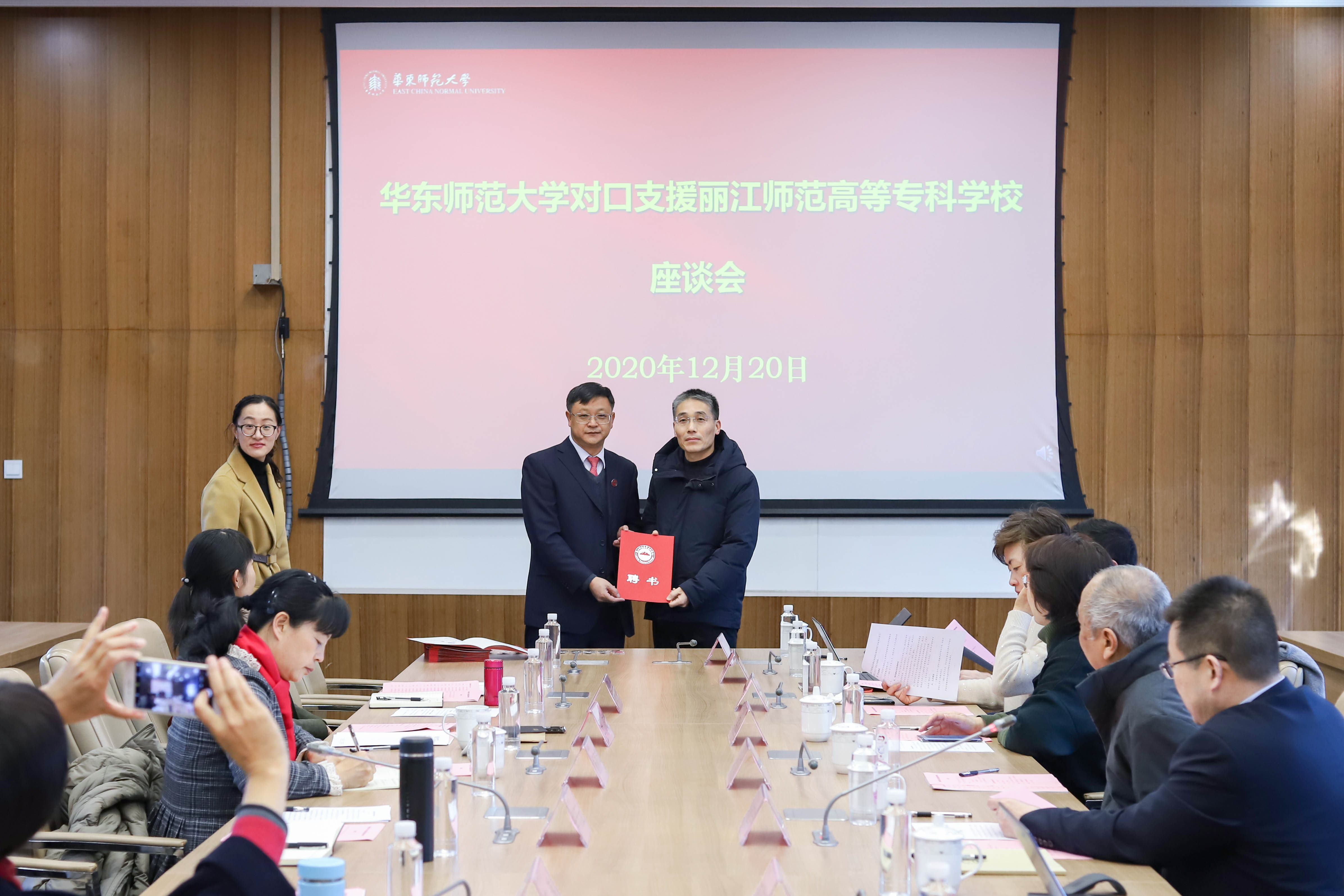 精准对接丽江师专“人才强校”发展战略,华东师大选派29位副高以上教师担任首批对口支援丽江师专兼职教授,以高层次人才资源输入,为丽江师专不断升级办学水平注入核心力量。会上,毕天云逐一为到场的受聘教师颁发聘书。