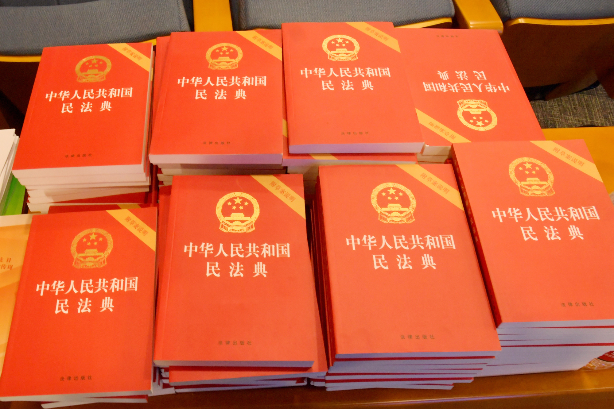 学生法律援助中心为到场学生们派发《民法典》法条以及上海市教委法宣办印发的2020年普法宣传资料