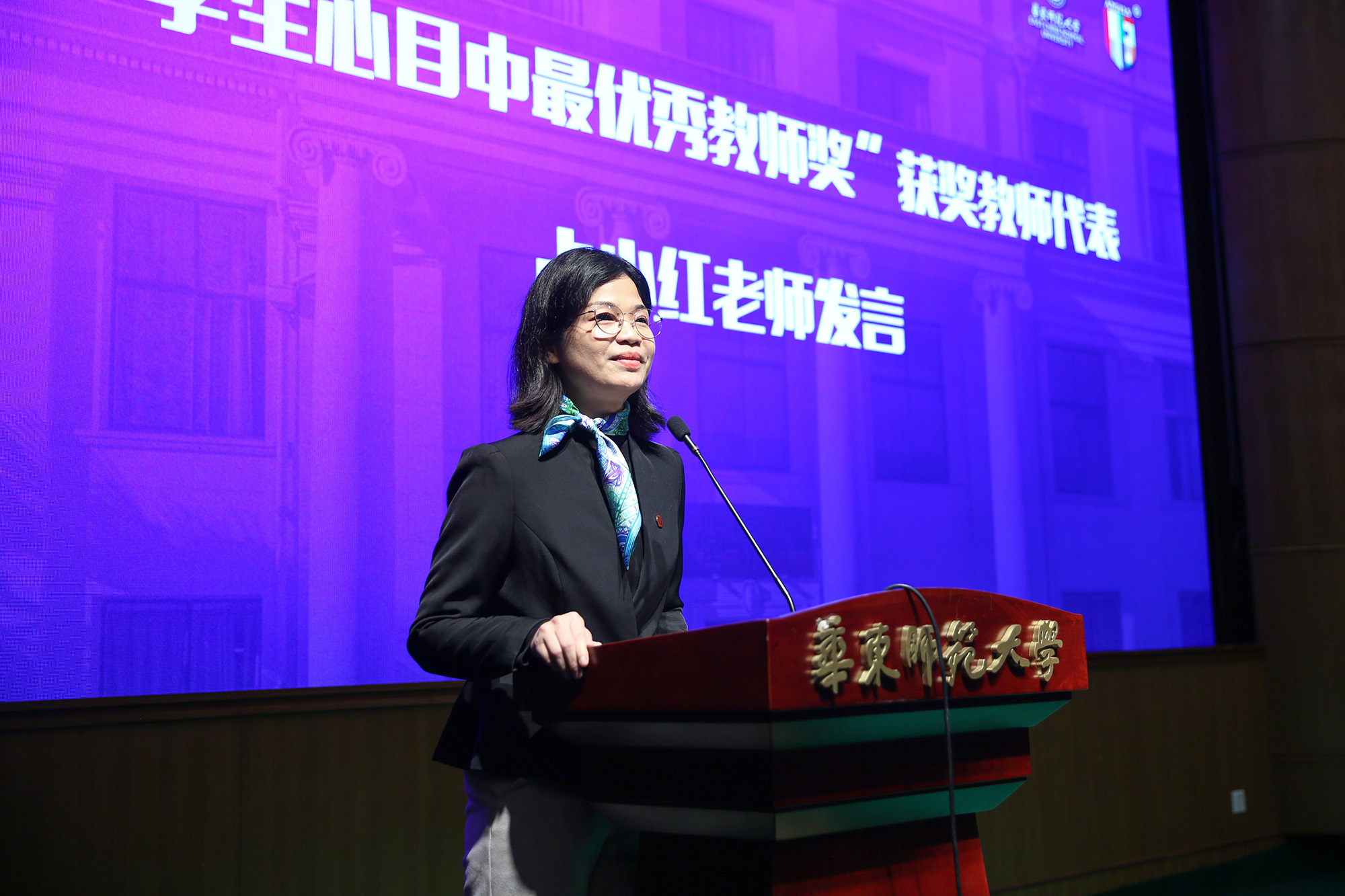 “学生心目中最优秀教师”获奖代表占小红老师在发言中表示,这个称号,既是荣誉,也是责任。作为一名大学教师,学术研究的积累,不仅是讲课的背景,更是决定能否举重若轻表达的关键,教学是一种创造性的劳动,不仅要在教学过程中“授业有方、解惑有法”,更要亲近学生、育心育人。青年教师应该积极响应学校号召,加倍努力工作,时刻不忘学习,提高自己的专业水平,为拔尖创新人才培养奉献自己的青春和力量,为师大早日建成世界知名高水平大学作出应有的贡献。