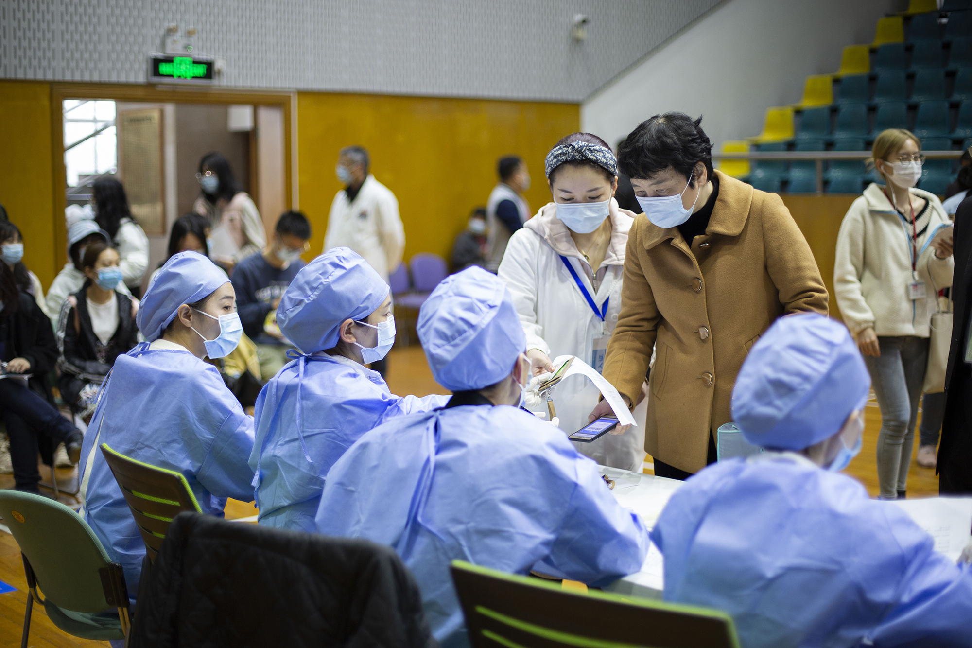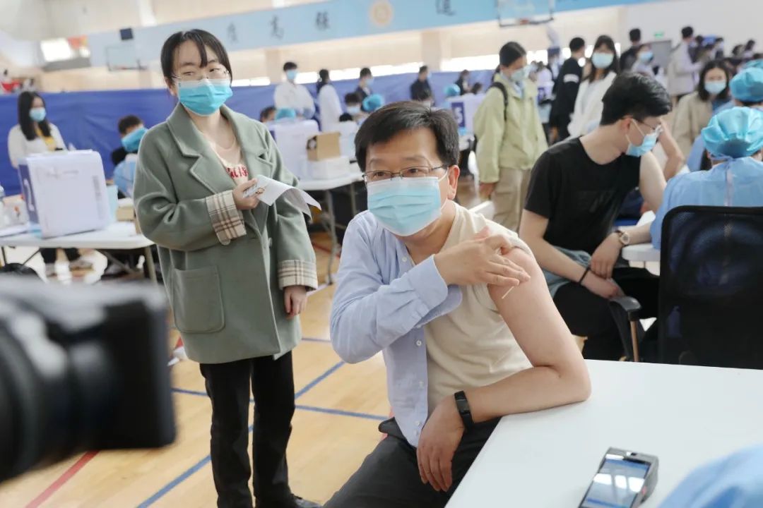 3月27-28日,约18000名学生及教职员工分校区、按时段在两校区体育馆接种了新冠疫苗分别由闵行区、普陀区医护人员组成的临时接种组“上门接种”。