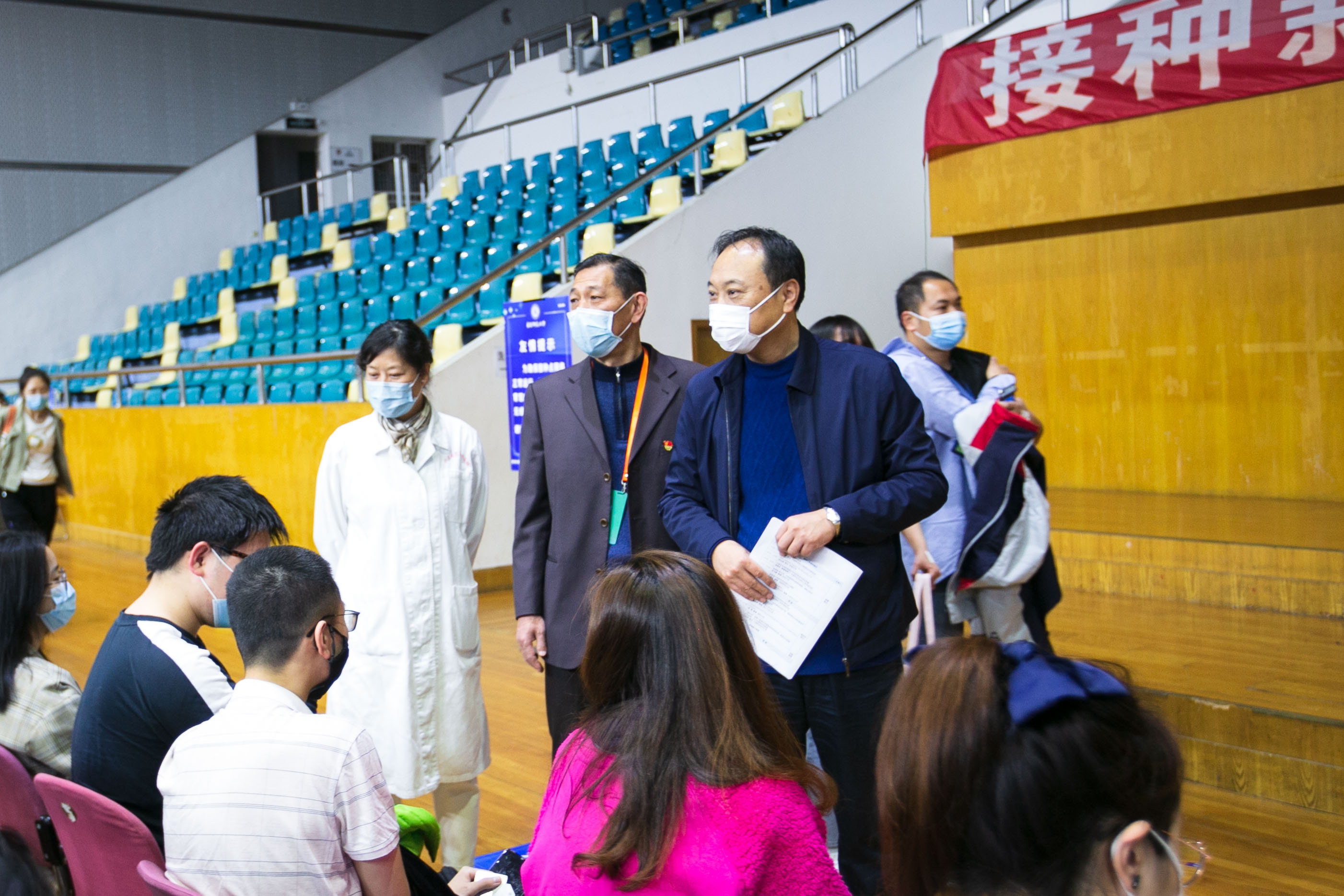 留观时,钱旭红看望、鼓励前来接种疫苗的同学们,嘱咐同学们合理安排三餐、注意营养,增强体魄。