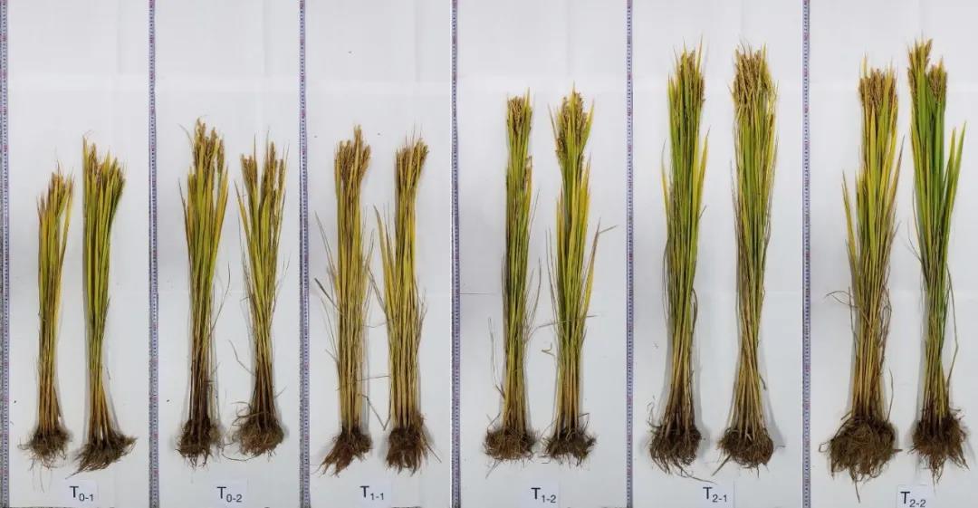 在改良过程中,研究人员对水稻生长、叶片叶绿素含量及土壤的pH值、盐渍化程度和各类酶活性等指标的变化进行连续监测,并将在实验结束后进一步比较土壤的肥力水平和生态质量。“直观可见的是,改良田水稻长势明显优于对照田。不同配方之间也有显著差异。通过土壤改良,水稻单位面积产量相对于未改良对照田土壤,提高了16%—128%。”邓泓说,改良田种植的水稻,茎、叶更为挺拔茂盛,株形明显优于对照田,且稻穗下垂,穗粒更为饱满。