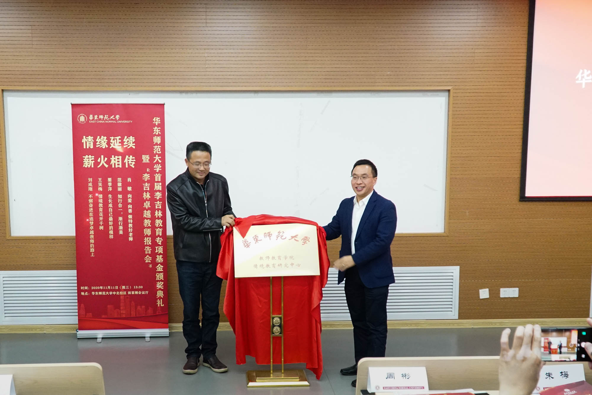 当天下午,华东师大教师教育学院院长、李吉林专项基金管委会主任周彬教授和李吉林老师之子、中国插花花艺大师刘飞鸣先生一同为澳门永利皇宫官网入口教师教育学院情境教育研究中心揭牌。