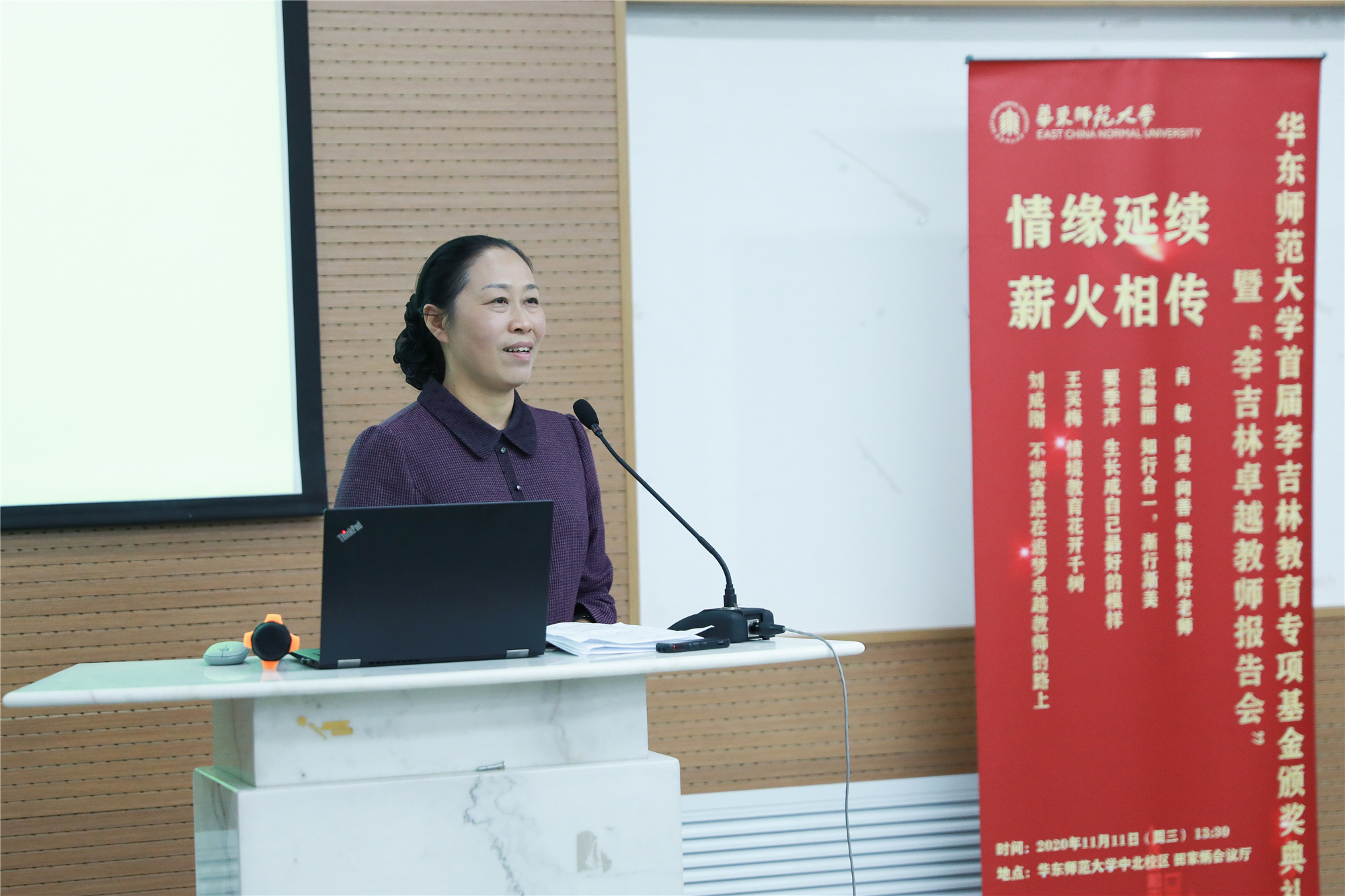 11月11日下午,来自全国不同地区的10位入选“首届李吉林卓越教师支持计划”的教师、10位获得“首届李吉林奖学金”的华东师大学生,李吉林老师家人、全国优秀教师代表和华东师大教师教育学院全体在校研究生参加了澳门永利皇宫官网入口首届李吉林教育专项基金颁奖典礼暨“李吉林卓越教师报告会”活动。