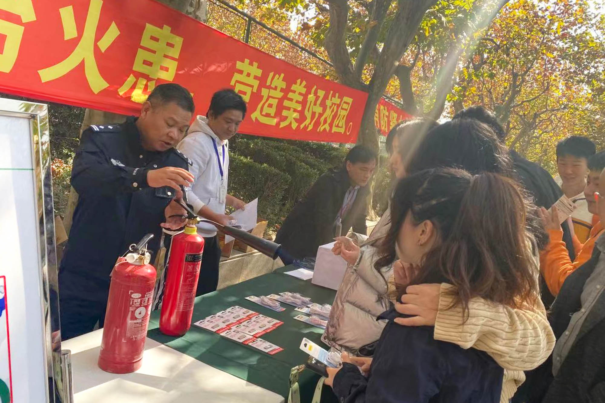 活动以“关注消防,生命至上”为主题,通过消防宣传展板、消防知识有奖问答、消防器材使用讲解、消防战斗服体验、模拟逃生体验等形式,帮助师生了解消防法律法规、掌握火场逃生技能,知悉发生在身边的消防安全隐患事故,增强消防安全意识。