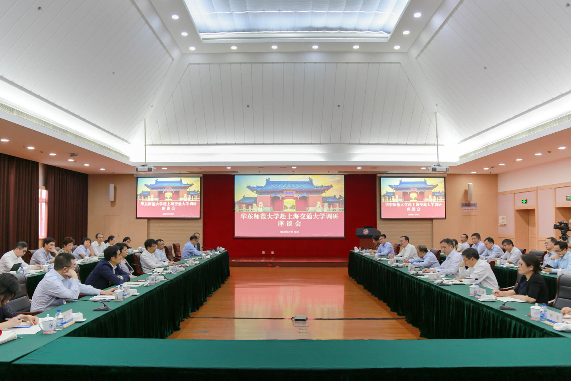9月30日下午,华东师大党委书记梅兵,党委副书记、校长钱旭红,党委常务副书记王宏舟,党委副书记曹友谊,副校长孙真荣、周傲英等一行赴上海交大调研交流。上海交通大学党委书记杨振斌,党委副书记、校长林忠钦,常务副校长丁奎岭,副校长张安胜、徐学敏、王伟明,以及相关学院职能部门负责人等出席了两校交流座谈会。会议由杨振斌主持。