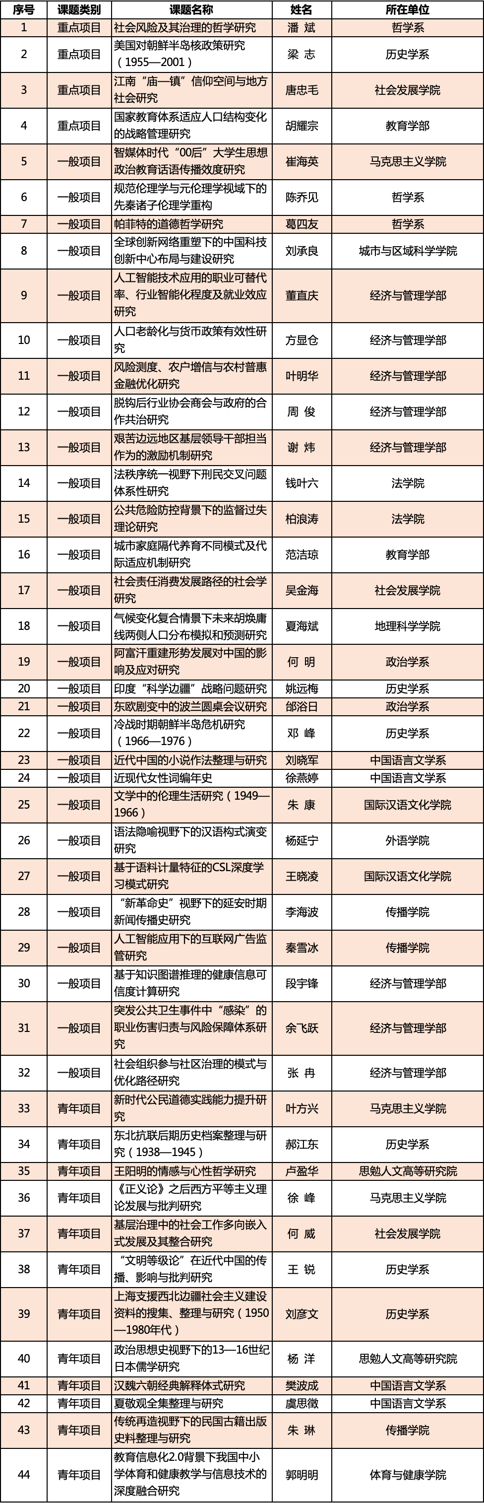 华东师大44项课题获立项资助