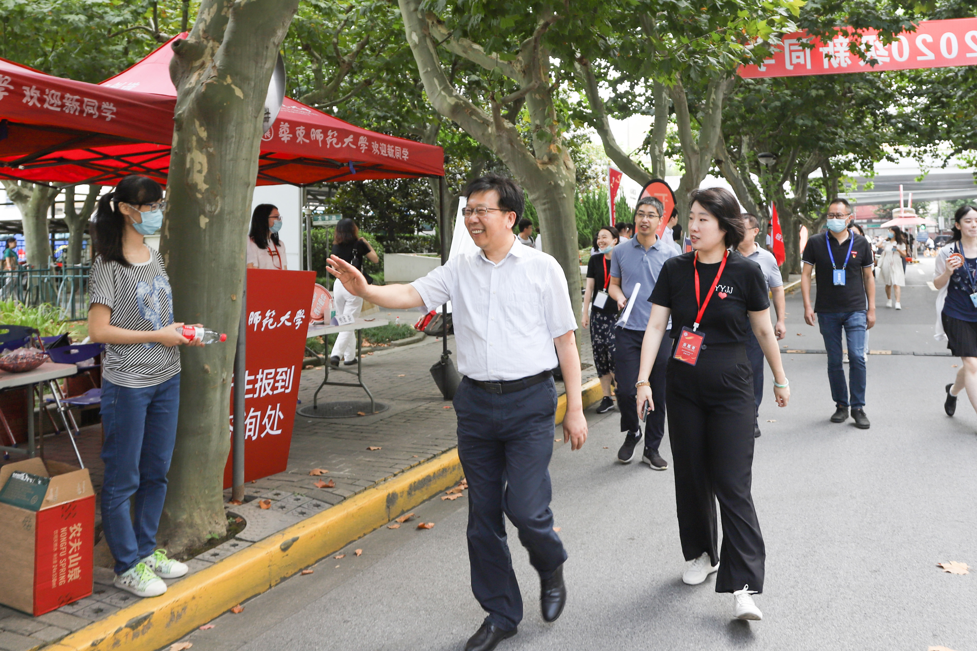 校领导梅兵、钱旭红、朱民、王宏舟、杨昌利、曹友谊、孙真荣、李志斌、周傲英、戴立益等来到迎新现场、服务窗口和学生宿舍,慰问参与迎新工作的师生,看望新生及其亲友们。