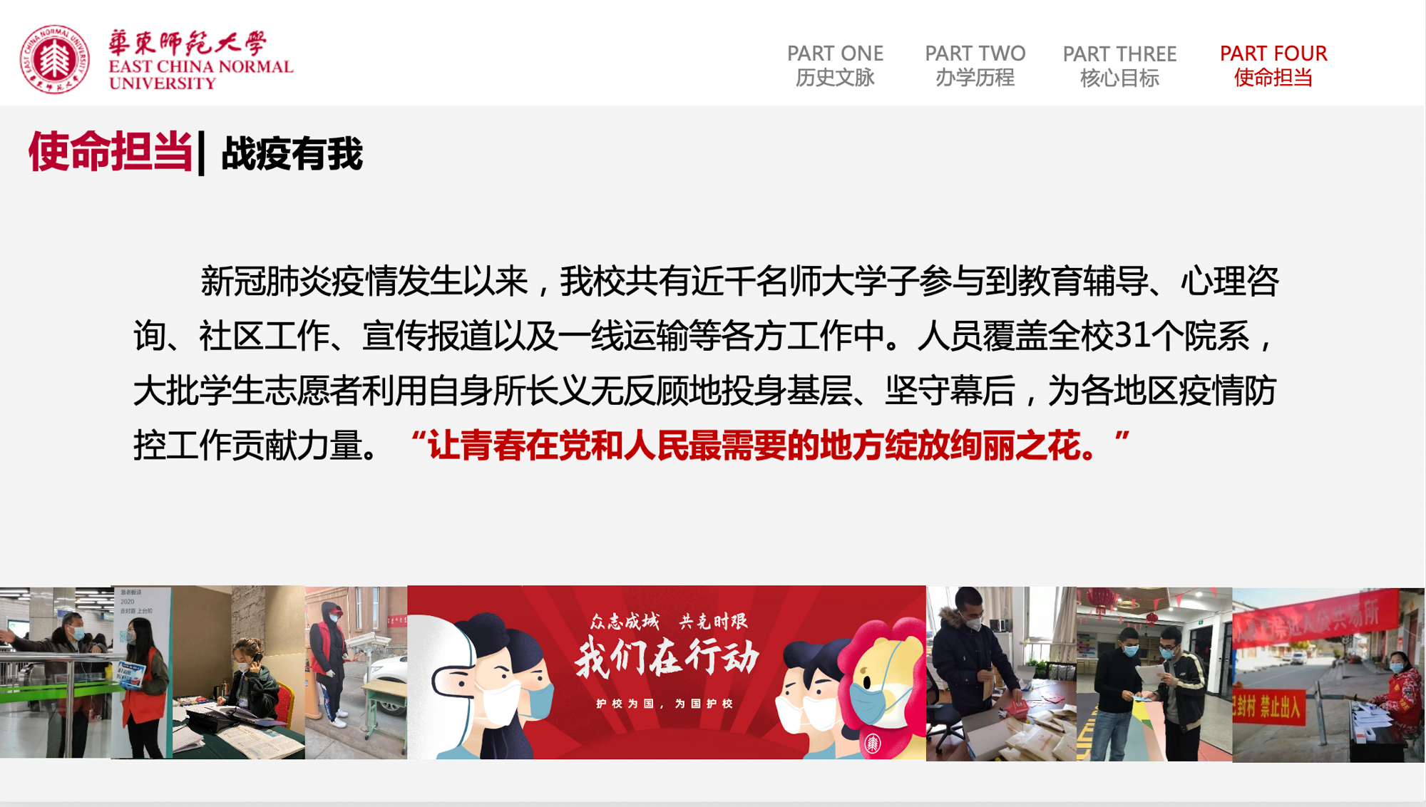 9月17日上午,澳门永利皇宫官网入口2020级新生迎来“开学第一课”。校党委书记梅兵以“知史爱校,做新时代奋进师大人”为主题作校史校情报告,为全校万余名新生讲述师大故事,解读师大文化。梅兵书记向全体2020级新生表达了热烈而真诚的欢迎,并从“光大华夏”“攀高行远”“卓越育人”“民族复兴”四个方面详细介绍了华东师大的历史文脉、办学历程、核心目标和使命担当。