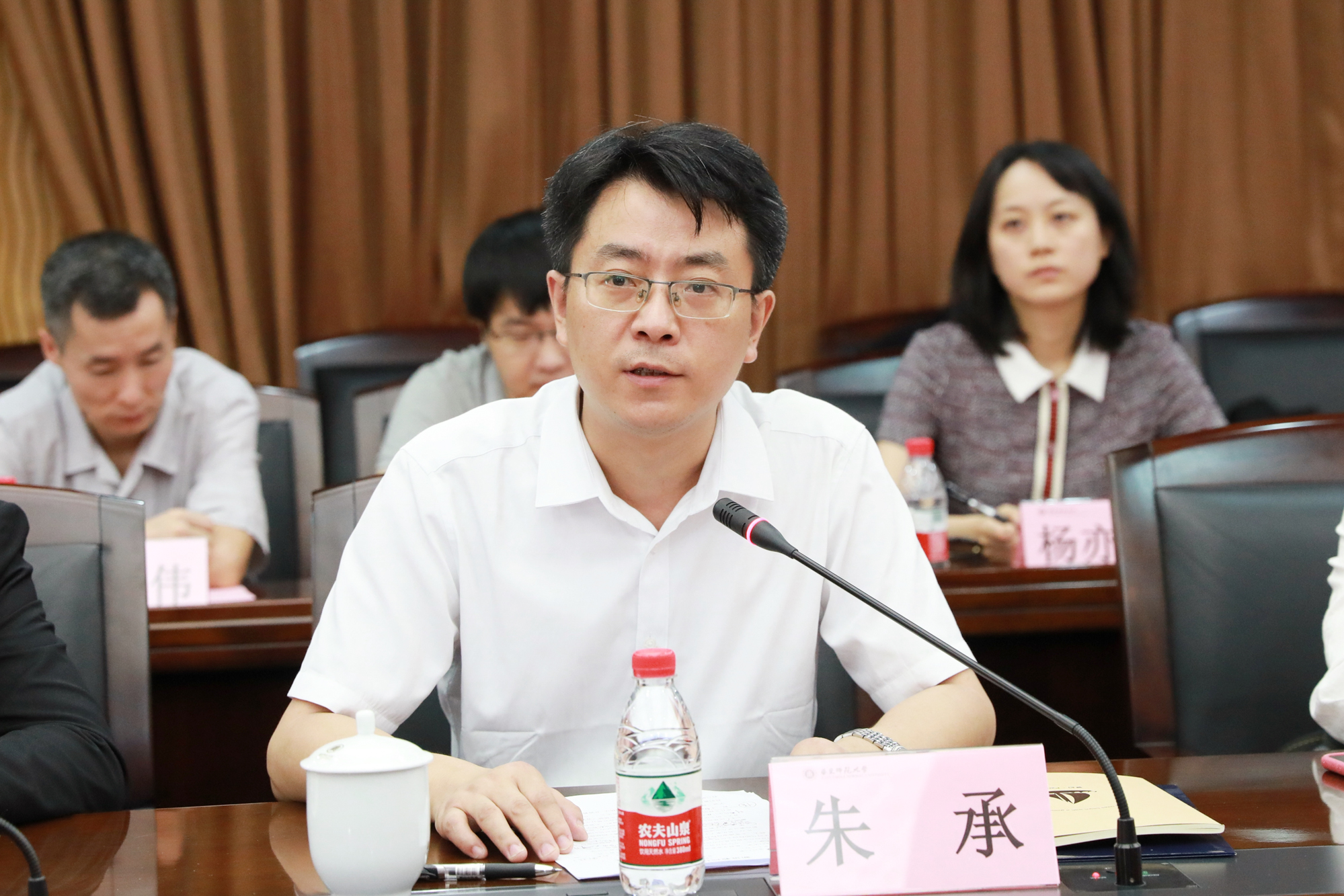 哲学系教授朱承作为新入职教职工代表在开班典礼上发言。作为一名毕业于华东师大、从事了十几年教学研究工作的“新进教师”,他分享了自己对过去工作的几点体会:一是乐于教书育人,将教书育人熔铸到自己的品性发展中,既具备精湛的业务水平,也体会教书育人的快乐,实现“品性的陶熔”;二是潜心科学研究,勇担科学革命时代最为重要的创新使命,实现“智慧的创获”;三是承担社会责任,立足本职工作,关心时代发展,投身“民族和社会的发展”。
