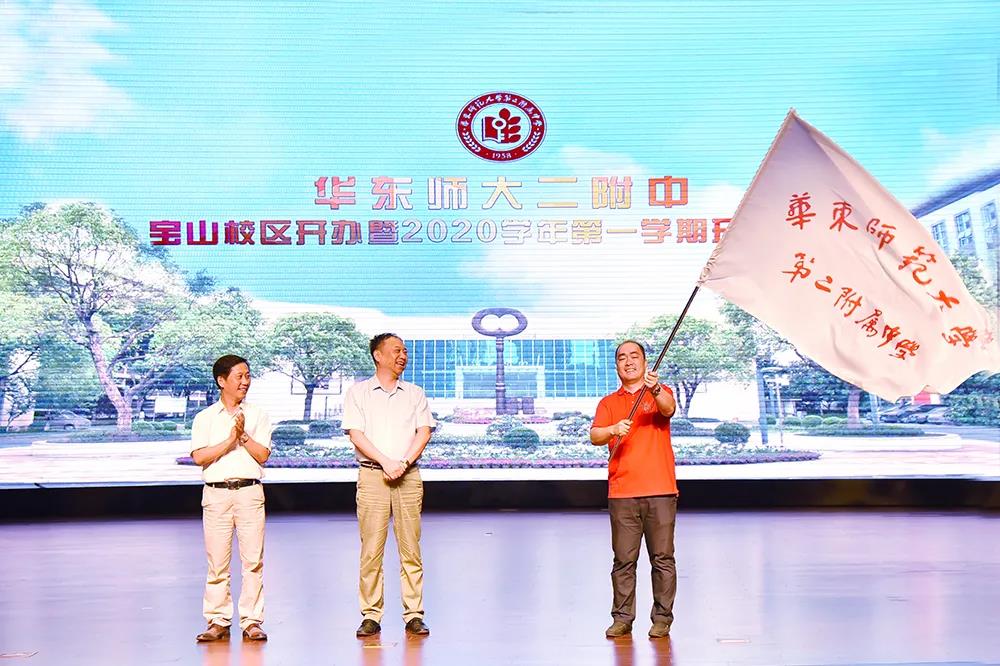 华东师大副校长戴立益、二附中校长李志聪向宝山校区授旗