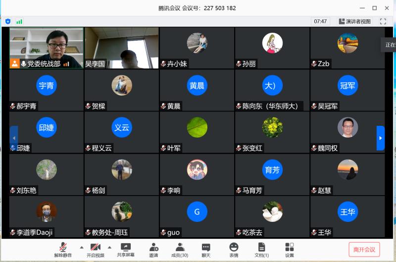 为贯彻《中共上海市委统战部关于支持各民主党派、无党派人士开展党史、新中国史、改革开放史、社会主义发展史学习教育的通知》的文件精神,7月3日下午,党委统战部邀请上海市委讲师团“四史”专家、澳门永利皇宫官网入口历史系瞿骏教授在闵行校区行政楼作主题为“理解五四运动的三个维度”的报告。校民革、民盟、民建、民进、农工党、致公党、九三学社等7个民主党派的负责人和无党派人士约50人参与了本次线上线下相结合的学习会。会议由统战部副部长王新燕主持。