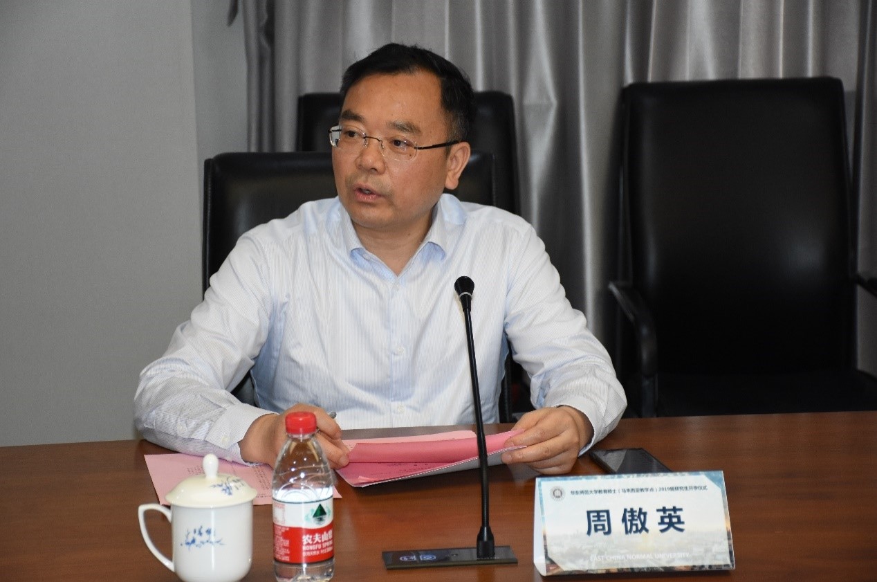 周傲英在致辞中首先向马方嘉宾和朋友表示亲切问候。他指出,华东师大作为以教师教育、教育研究和教育服务为特色的综合性研究型大学,用“王牌”专业服务国家、民族发展,对接“一带一路”发展战略、推动中华优秀传统文化创造性转化、创新性发展,助力海外华族华人繁荣发展,责无旁贷。他期待双方以此项目为基础,积极拓展更多更有影响力、发展性和全局性的合作。同时,他向18位新生表示祝贺,寄语他们尽快适应华东师大研究生的身份,做好规划、潜心学习研究,为促进中马友好交流和合作贡献力量。