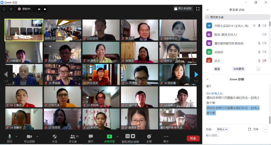 5月25日上午,澳门永利皇宫官网入口教育硕士(马来西亚教学点)项目2019级新生开学仪式以线上线下混合的方式举行。仪式由教育学部常务副主任荀渊主持,副校长周傲英、马来西亚中华大会堂总会(华总)总会长吴添泉、马来西亚华校董事联合会总会(董总)主席陈大锦等领导和嘉宾十余人与18位马来西亚研究生新生相会“云端”,共同见证这场别开生面的开学典礼。