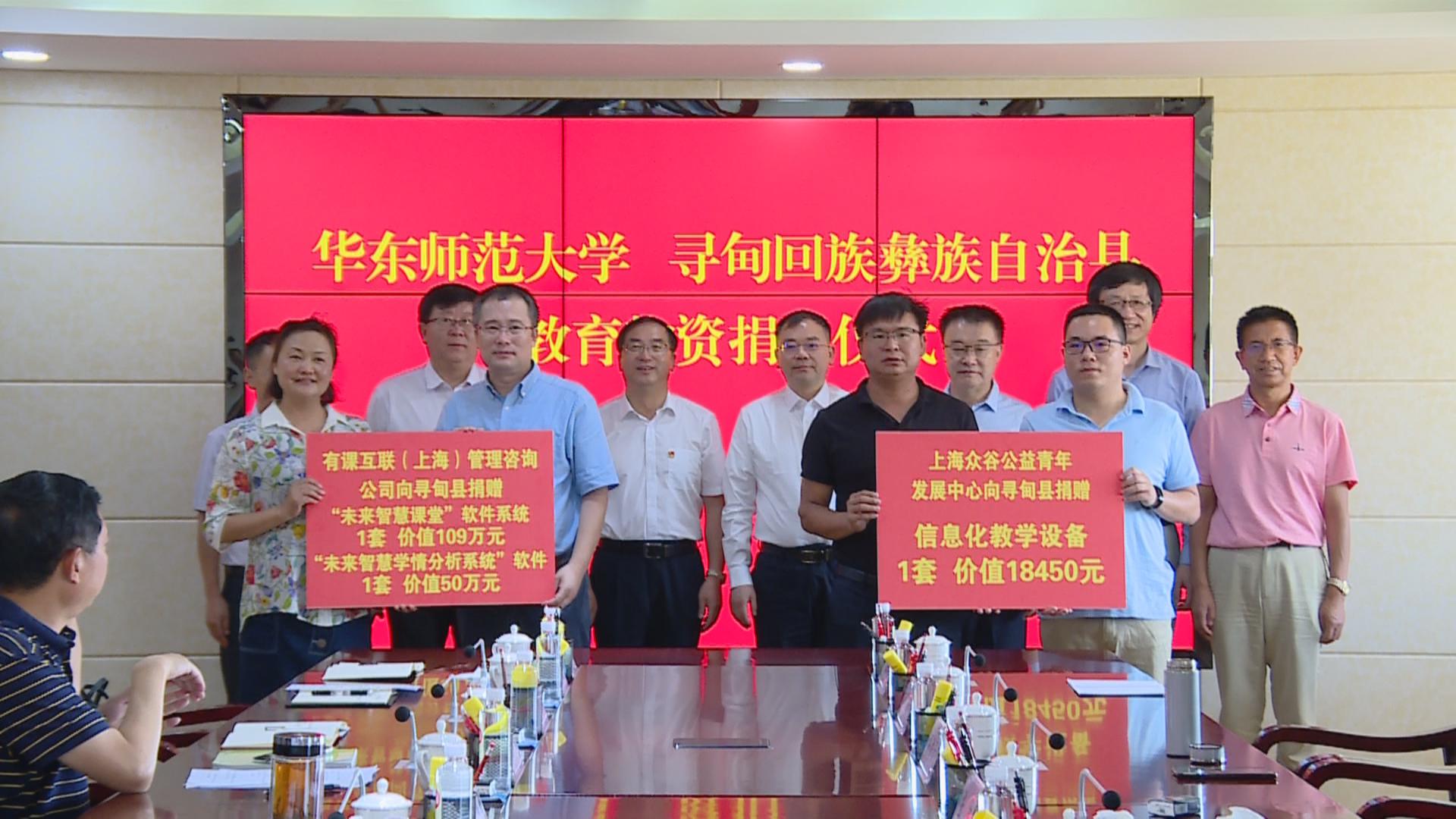 仪式上,华东师大校友、有课互联(上海)管理咨询有限公司CEO涂成平向柯渡镇初级中学捐赠教育设备和软件。
