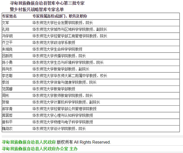 寻甸县政府网站公布智库专家名单