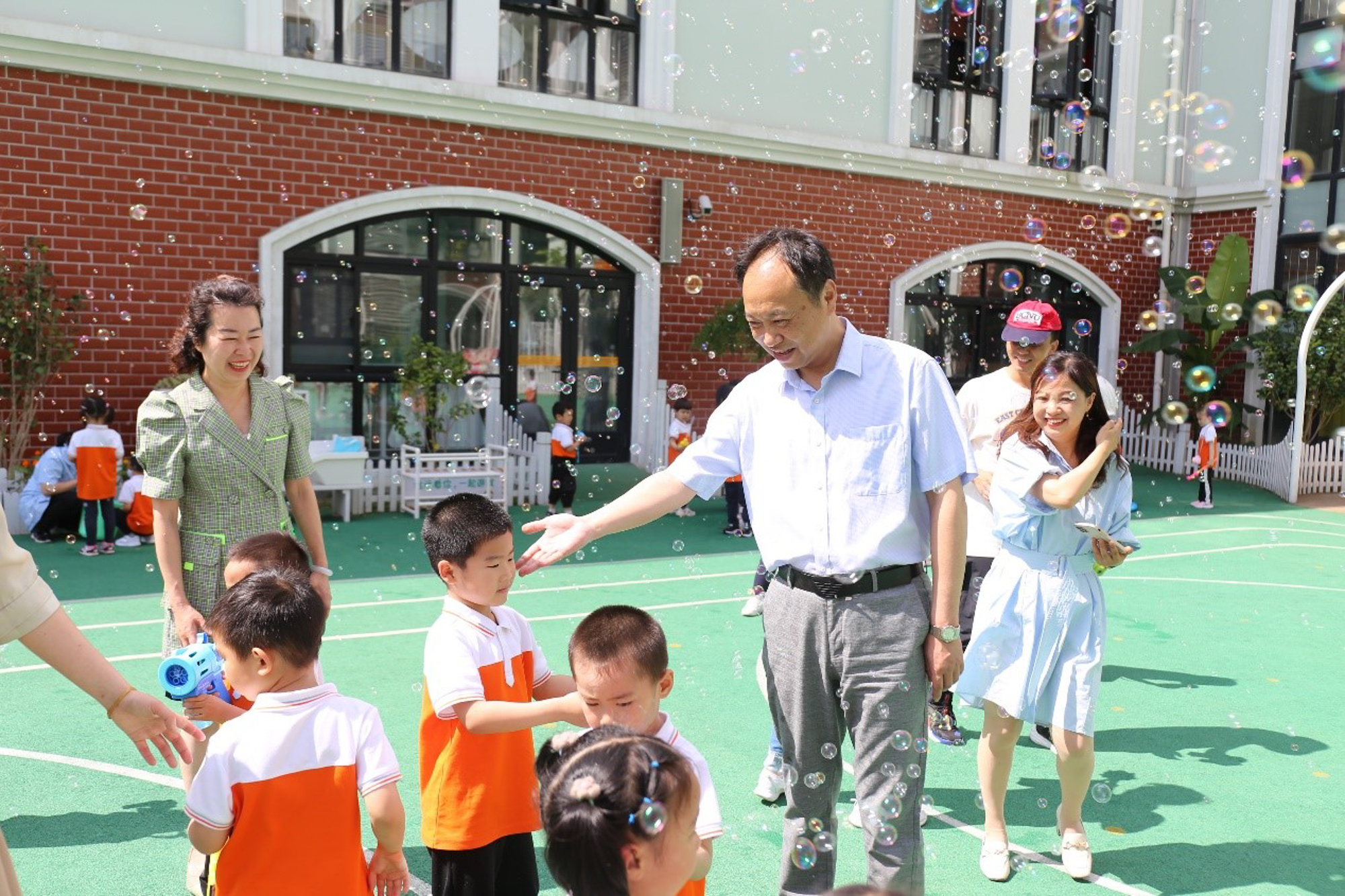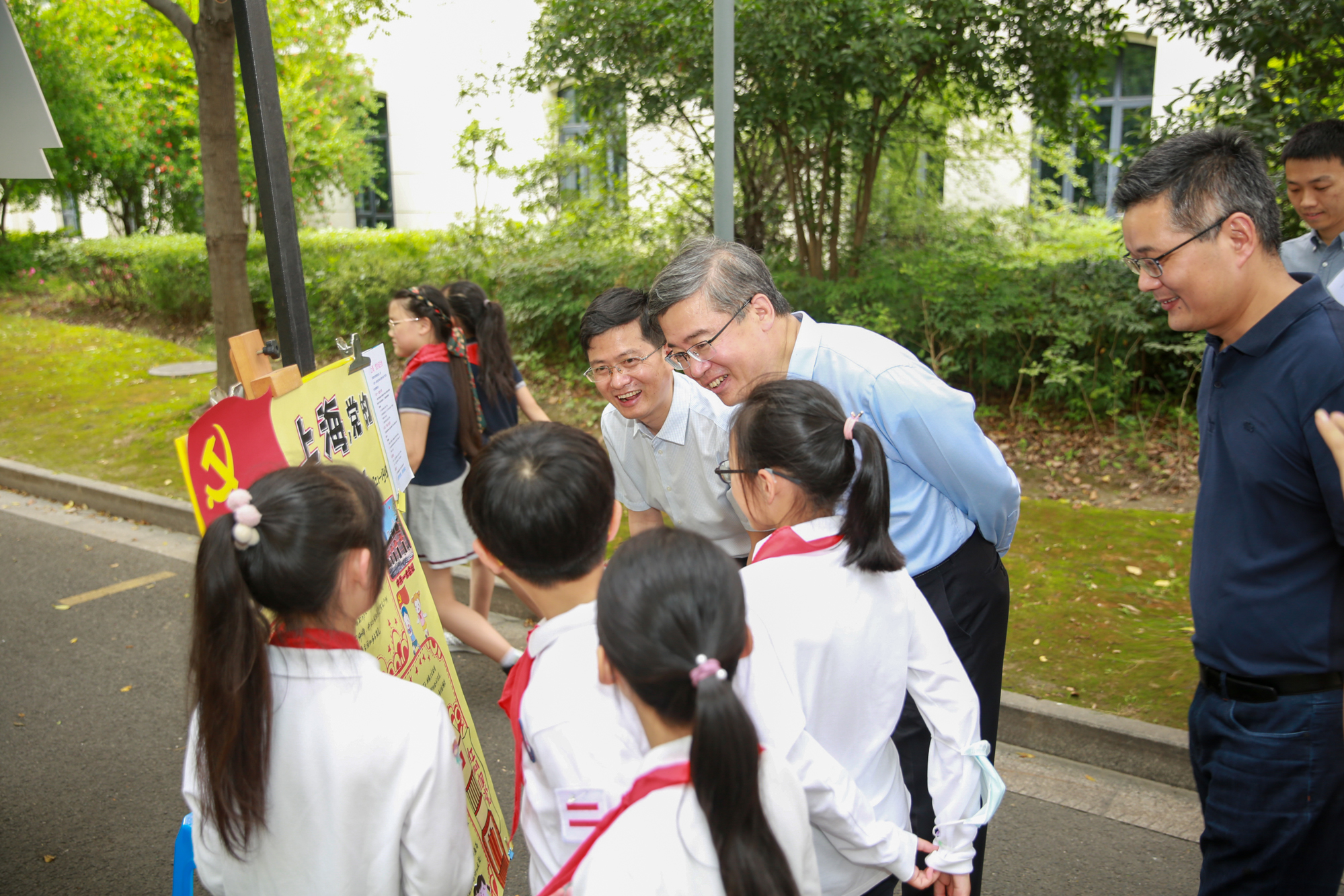 华东师大党委副书记、纪委书记曹友谊,基础教育与终身教育发展部副部长刘萍,教育集团副主任、二附中校长李志聪参加了华二紫竹双语学校“我在PBL 领飞未来”六一课程汇报活动。