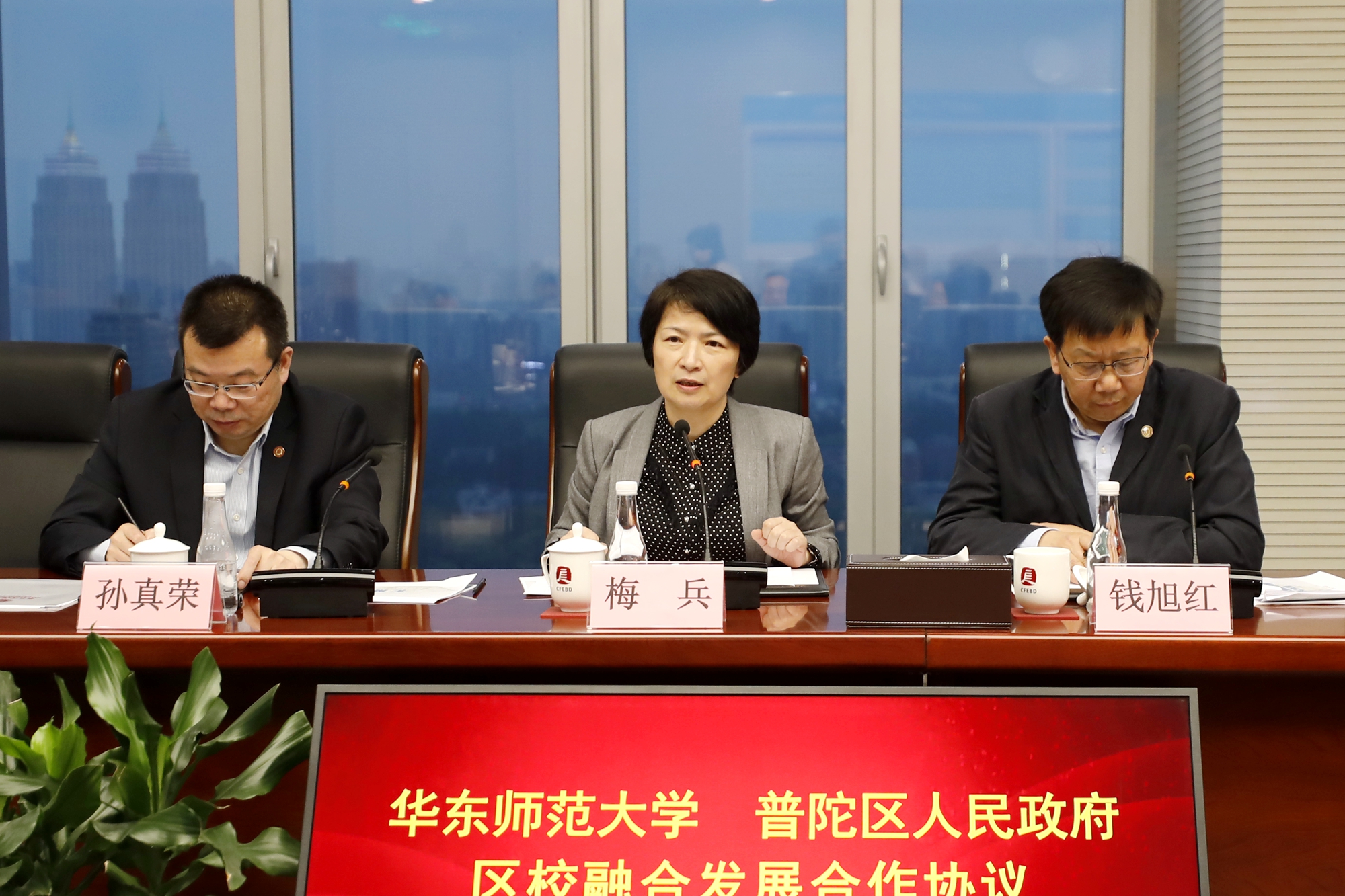 普陀区委常委、副区长张玉鑫,华东师大党委常委、副校长孙真荣代表双方签约。