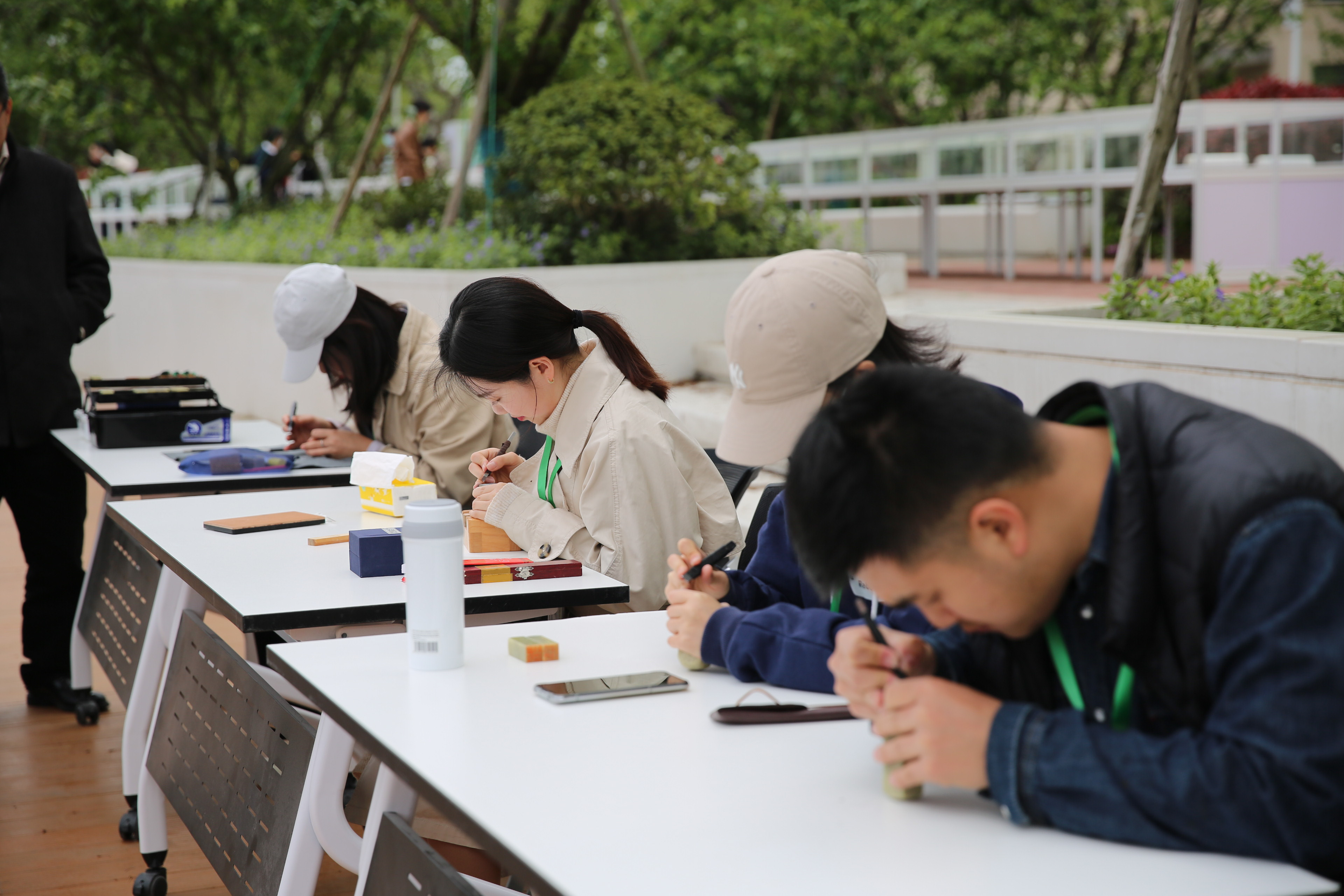 另外,为了能够让书法篆刻艺术感染到校园里的每一位同学,现场特别设置了书写兰亭区和篆刻体验区,喜欢书法的同学可获得“兰亭”主题活动书签,爱好篆刻的同学可进行尝试体验,有专业的老师和同学进行辅导,让篆刻成为大家了解和接纳传统文化的切实方式。有趣的是,篆刻还作为载体来回馈踊跃参加本次活动的观众,同学们只要在活动现场打卡,就有可能获得由书法篆刻专业同学量身定制的姓名印章,此活动吸引了众多学生驻足参与,增添了此次活动的影响力和传播度。