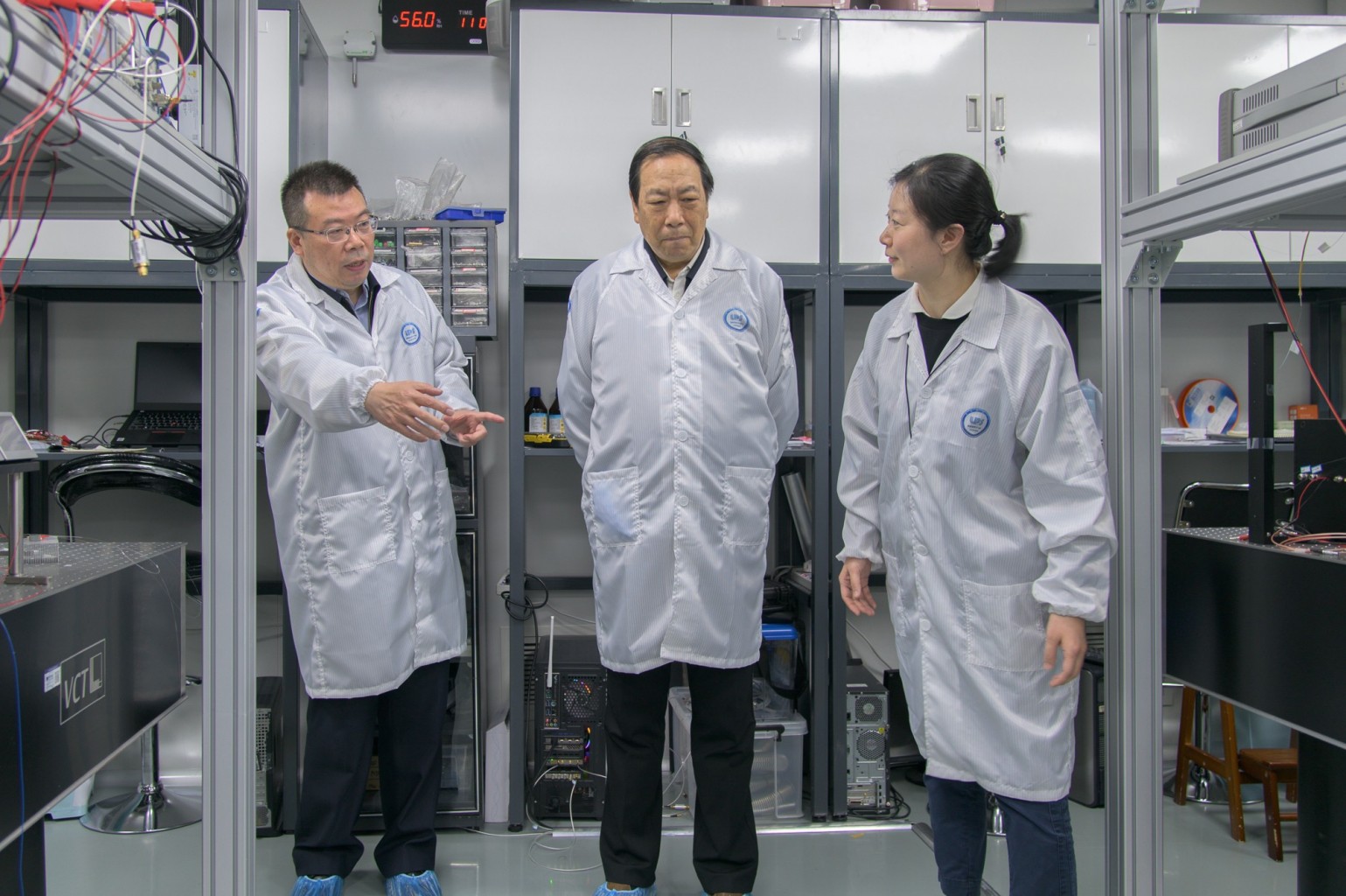 在精密光谱科学与技术国家重点实验室,调研组听取了孙真荣就实验室定位与特色、主要研究方向、整体研究布局、历史沿革、团队建设与人才培养、承担重要科技项目、实验室大型仪器设备方面的情况介绍,与一线科研人员亲切交谈,参观了分子超快动力学实验室、量子信息与量子测量实验室、超快光梳光谱实验室、超冷量子气体实验室以及冷镱原子光钟和原子陀螺等实验室,听取大家对科研工作的想法和建议。吴道槐对实验室工作给予高度评价,并指出要不断探索精密光谱学现代科技前沿,凝聚一流的科技人才,提高政治站位,拓宽研究视野,为服务国家重大战略需求作更大贡献。