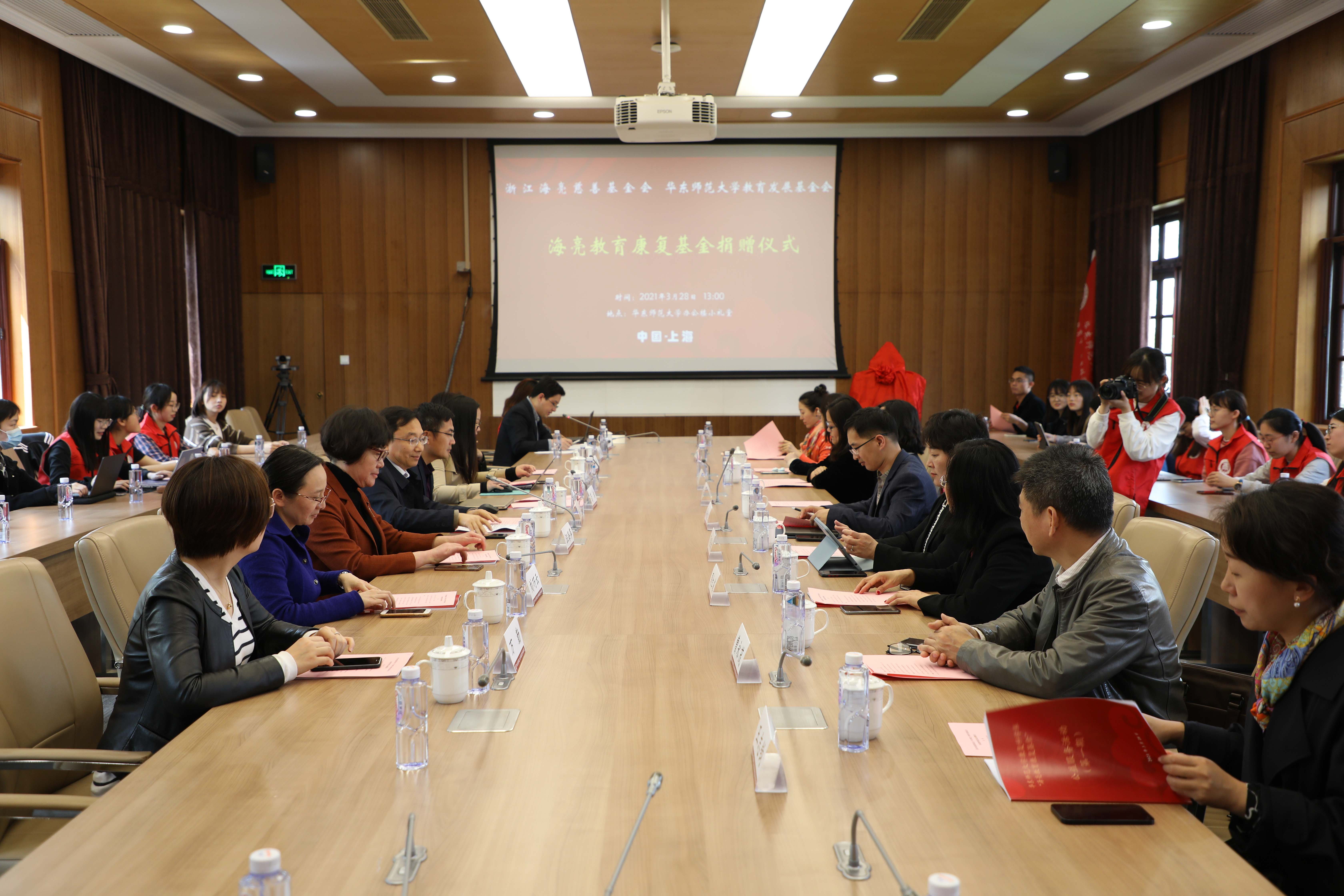 28日,海亮教育康复基金捐赠暨澳门永利皇宫官网入口实践教学基地授牌仪式在澳门永利皇宫官网入口中北校区隆重举行。海亮集团纪委书记、浙江海亮慈善基金会副秘书长潘金生,海亮教育管理集团教育工会主席、融爱星总经理肖照娥,融爱星康复副总经理方杨红,融爱星专家委员会教学督学、融爱星康复(上海长风中心)校长周红省,融爱星教育管理中心副总监宋阳;澳门永利皇宫官网入口校长助理、教育发展基金会秘书长斯阳,教育学部常务副主任荀渊,教育学部教授汪海萍,教务处经雨珠、音乐学院音乐教育专业负责人李茉;康复科学系刘巧云、万勤、程辰、卢海丹、赵航等教师;《听力与言语病理学杂志》编辑部主任、武汉大学人民医院耳鼻咽喉-头颈外科主任医师曹永茂、复旦大学附属儿科医院儿保科主任医师丁艳华、朵云轩少儿美育研究与实践基地总督导王志均等专家出席活动。活动由学校教育发展基金会副秘书长章晶晶主持。