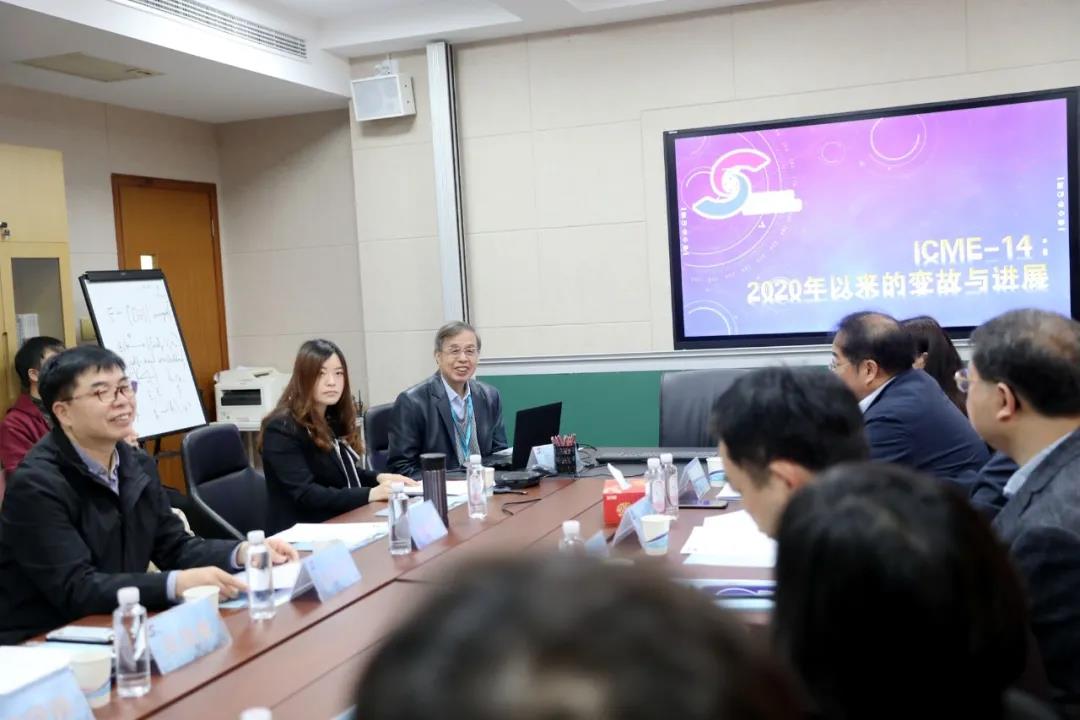大会主席王建磐教授从延期召开、会场变更、模式改变、筹备重置、申请资助等方面详细介绍了大会目前筹备进展情况。筹备工作组通报了ICME-14筹备工作进展,并就后续工作进行了细致安排,细化了大会筹备工作方案。大会内容将涵盖各个学段、各类主题的全球数学教育研究最新进展,将举办4场大会个人报告(Plenary Lecture)和3场大会团队报告(Plenary Panel)。另有4个专题调查组(Survey Team)、70余场邀请报告(Invited Lecture)、62组专题研究(Topic Study Groups)等学术活动。