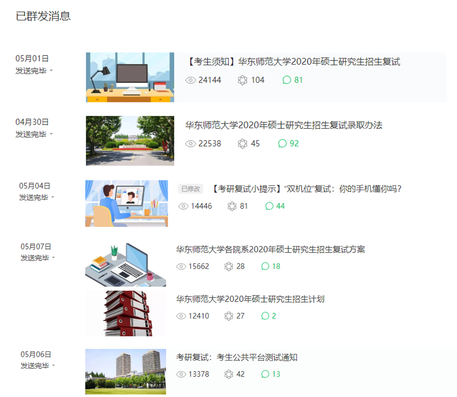 通过“华东师大研招”微信公众号为考生推送复试相关信息