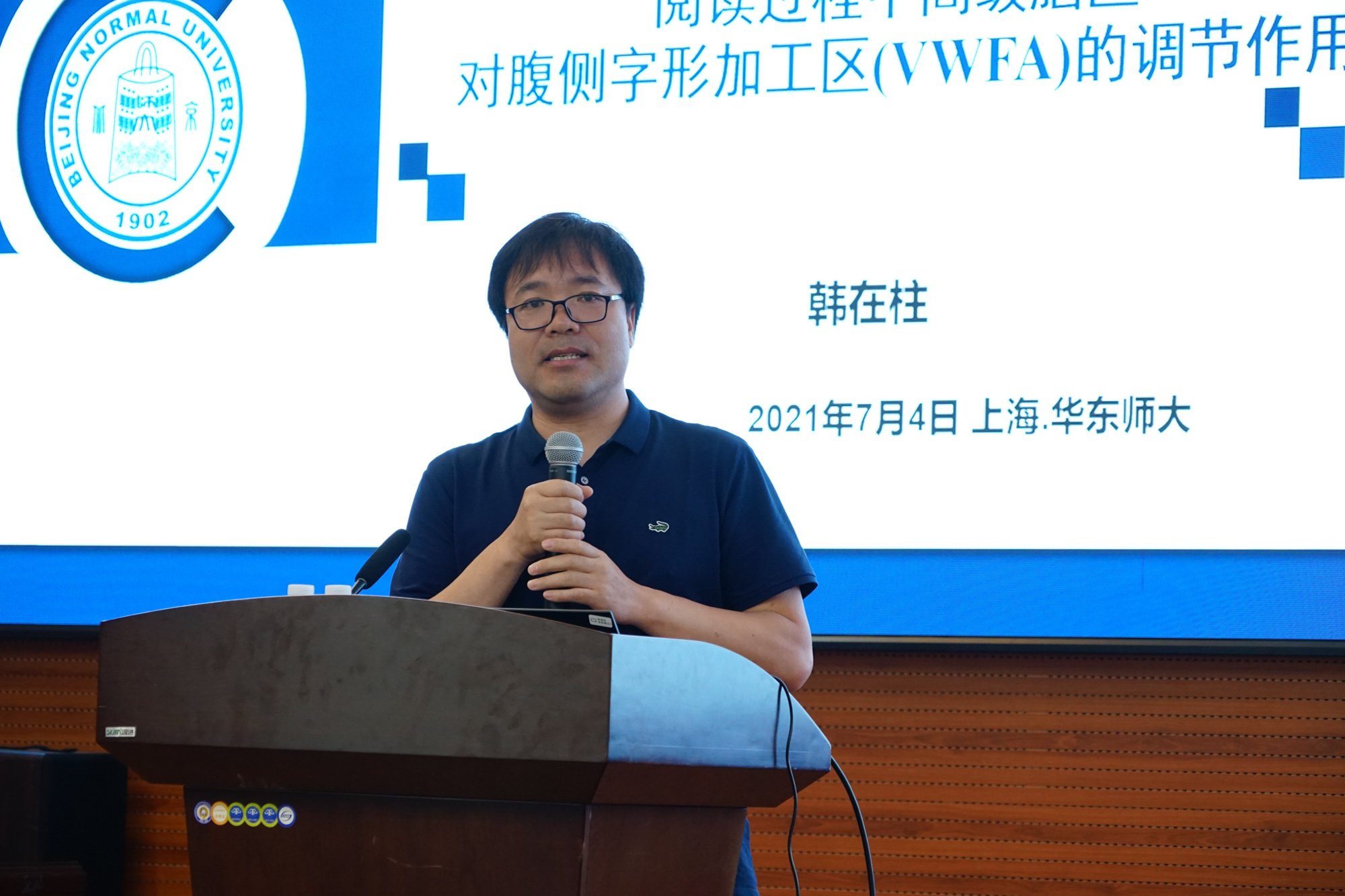 北京师范大学心理学部教授韩在柱介绍了视觉字形区域的形成原因及其在文字加工中所起到的具体作用,在“视觉形状假说”和“交互作用假说”的争议中为后者提供了重要的实验证据。中国人民大学心理系教授张清芳在报告中提出,书写运动会影响文字的字形识别过程。上海纽约大学助理教授田兴关注了言语产生这一完成语言交流的重要环节,分享了在不同人群上进行的一系列研究,对运动感知转换在言语产生中的机制进行了深入的探讨。上海外国语大学语言研究院教授蒋晓鸣则讨论了人类嗓音信息在语言交际中发挥的重要作用。