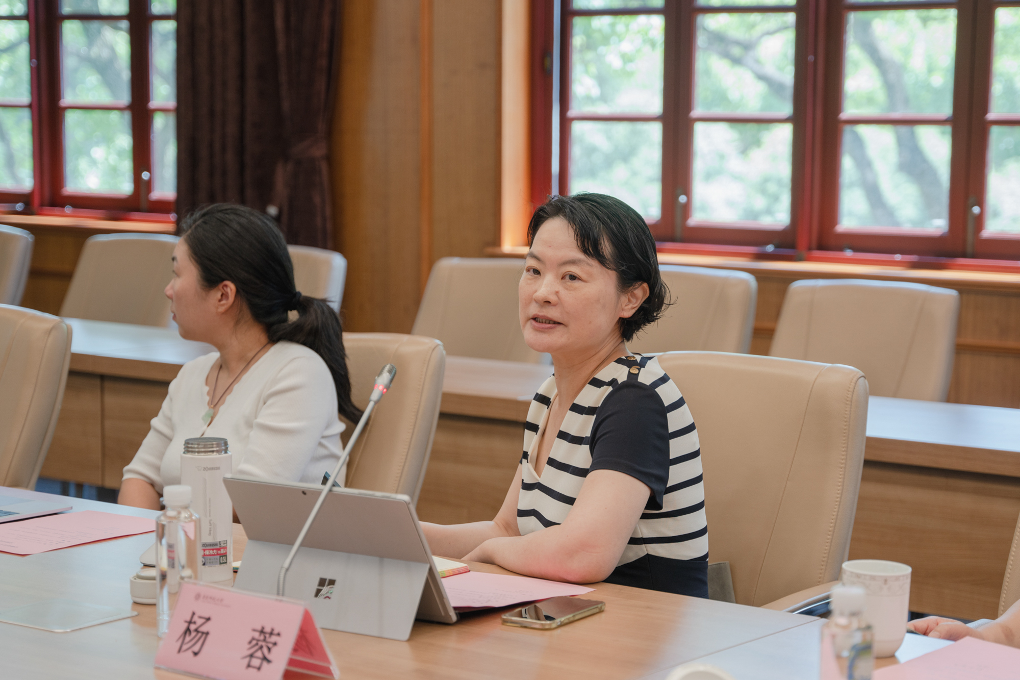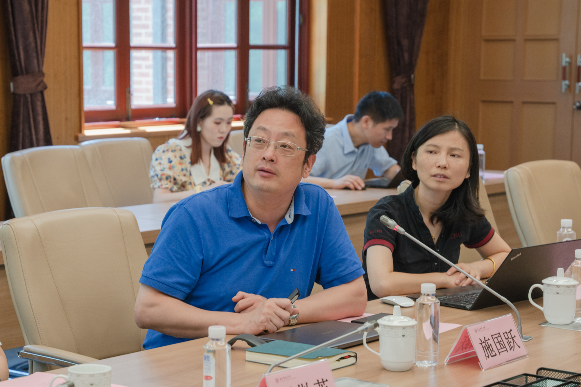 在座谈交流中,周傲英对澳门永利皇宫官网入口发展的历史、卓越育人计划以及国际化办学合作情况进行了深入的介绍。人事处处长施国跃对学校人才政策、人才队伍建设、岗位编制管理、教职工考核和绩效工资分配工作进行了介绍;发展规划部部长杨蓉从学科建设、实验室建设、科研平台、团队、标志性成果的培育等方面介绍了相关情况;科技处副处长王华从“破五唯”、科研成果奖励、科研放管服的举措等方面介绍了科研管理情况;学生(研究生)工作处副处长李燕从建设进展、工作架构、协同创新等方面介绍了本科生书院制度。会上,双方还就科研平台建设、学院-书院体制下行政人员数量、辅导员岗位的稳定性、每年新增专职教师人数等问题进行了交流。