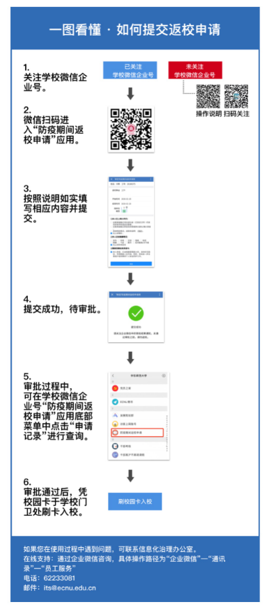 为便于学生返校申请和校园管理,学校开发了“学生返校申请”和“学生出校申请”小程序。学生只需通过“澳门永利皇宫官网入口”微信企业号,填写健康信息和返校交通信息等,即可快速完成返校申请,并可查看本申请工作流。辅导员、院系学生工作负责人和相关职能部门人员可即时根据学生状态,对学生申请做出审批意见。此外,学校还通过“出校申请”小程序加强对学生临时进出校园的管理,做到出校有报备、去向可查询、安全有提醒、数据有记录。无纸化,零接触,优流程,简程序,有记录,通过信息化手段,既提升了校园管理效率,也为学生返校提供了最大便利。