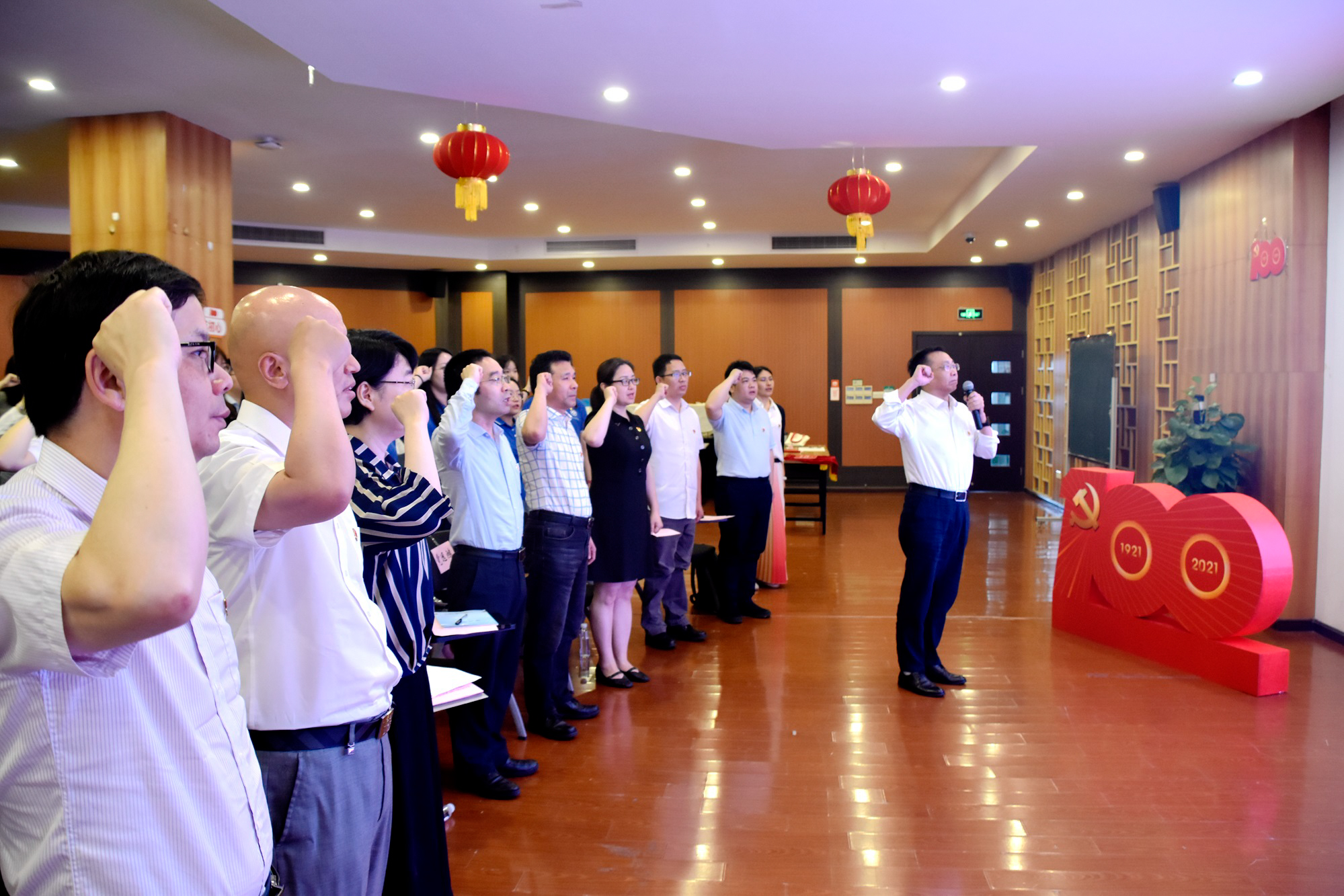 校党委副书记、纪委书记曹友谊带领在场师生党员重温入党誓词