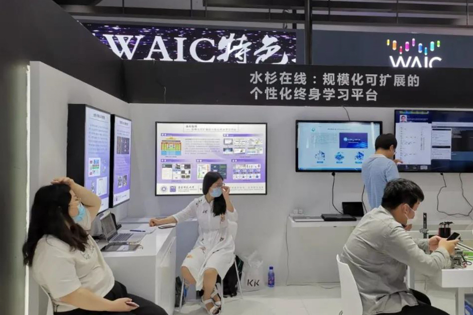 今年的世界人工智能大会教育主题论坛由华东师大承办,两天以来,“AI赋能教育数字化转型主论坛”“长三角协同推进教育数字化转型论坛”以及“智能教学”“课堂变革”“人才培养”“仿真实训”四个平行分论坛轮番登场,共吸引1200余人现场参会,24万余人在线参与。