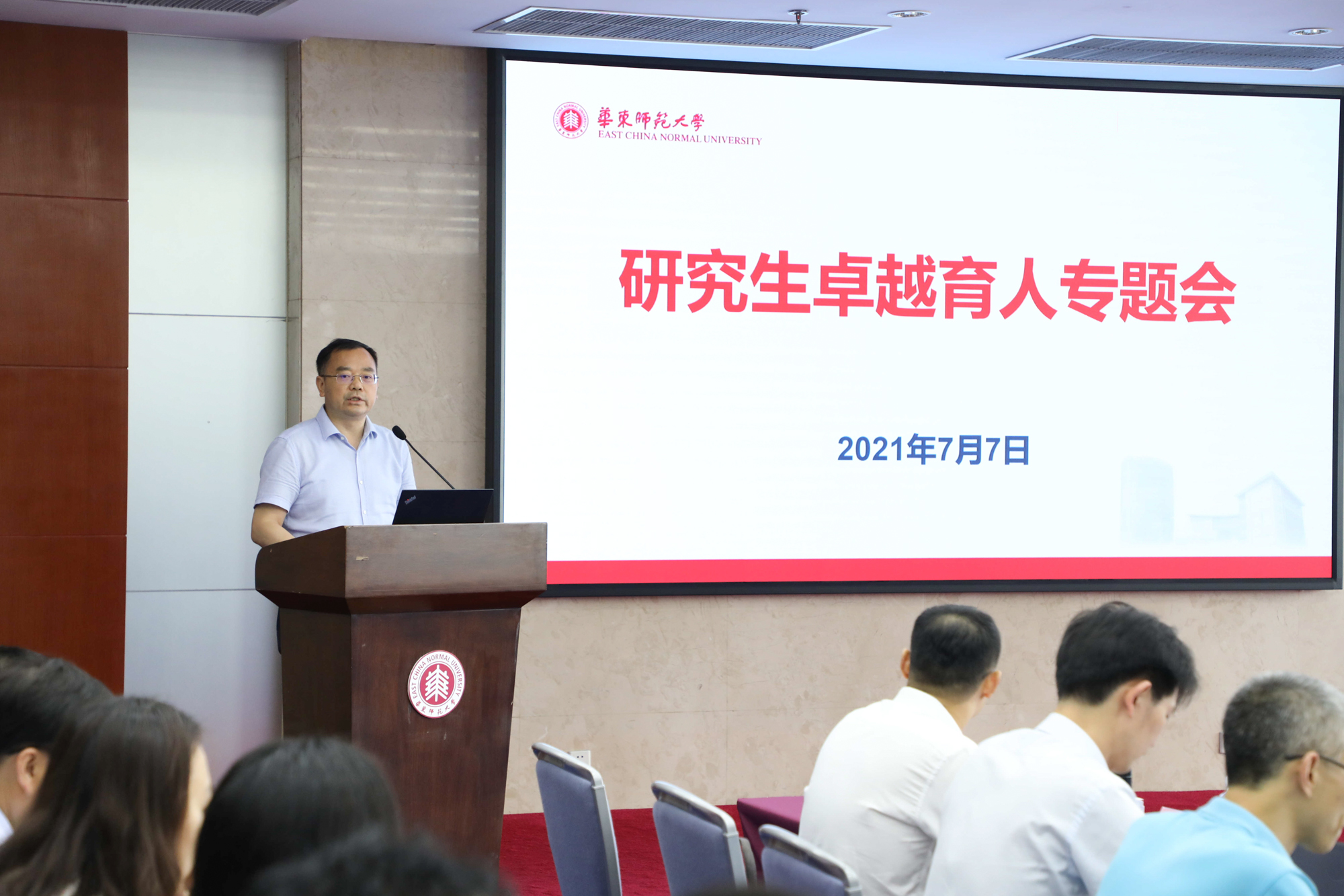 校长钱旭红在讲话中指出,在学校发布《关于开展卓越育人工作的通知》一周年之际举行研究生卓越育人专题会,是对学校卓越育人工作的阶段性总结。面向下一阶段,钱旭红重点强调四方面内容:一是作为新中国成立后组建的第一所社会主义师范大学,学校各战线、各单位必须切实肩负起以培养自由而全面发展的人为宗旨的育人使命;对标一流大学、一流学科持续升级培养方案,找出差距、明确目标,制订路线。二是课程设置要避免因人设课、教材严重脱离现实等问题,课程名称与授课内容应名实相符、教材选择应体现前沿。三是创新创业是改变中国教育乃至中国产业发展的重要方式、工具,应重视把科学研究、人才培养与仪器装备研发等融为一体,强化创新创业在研究生多元评价中的体现,为国家产业发展、变革作出贡献。四是重点推进学科交叉和跨学科研究,但应根据不同的学科发展水平分类指导,保证严格规范、提高质量,实现学科发展和人才培养指数级的提升。