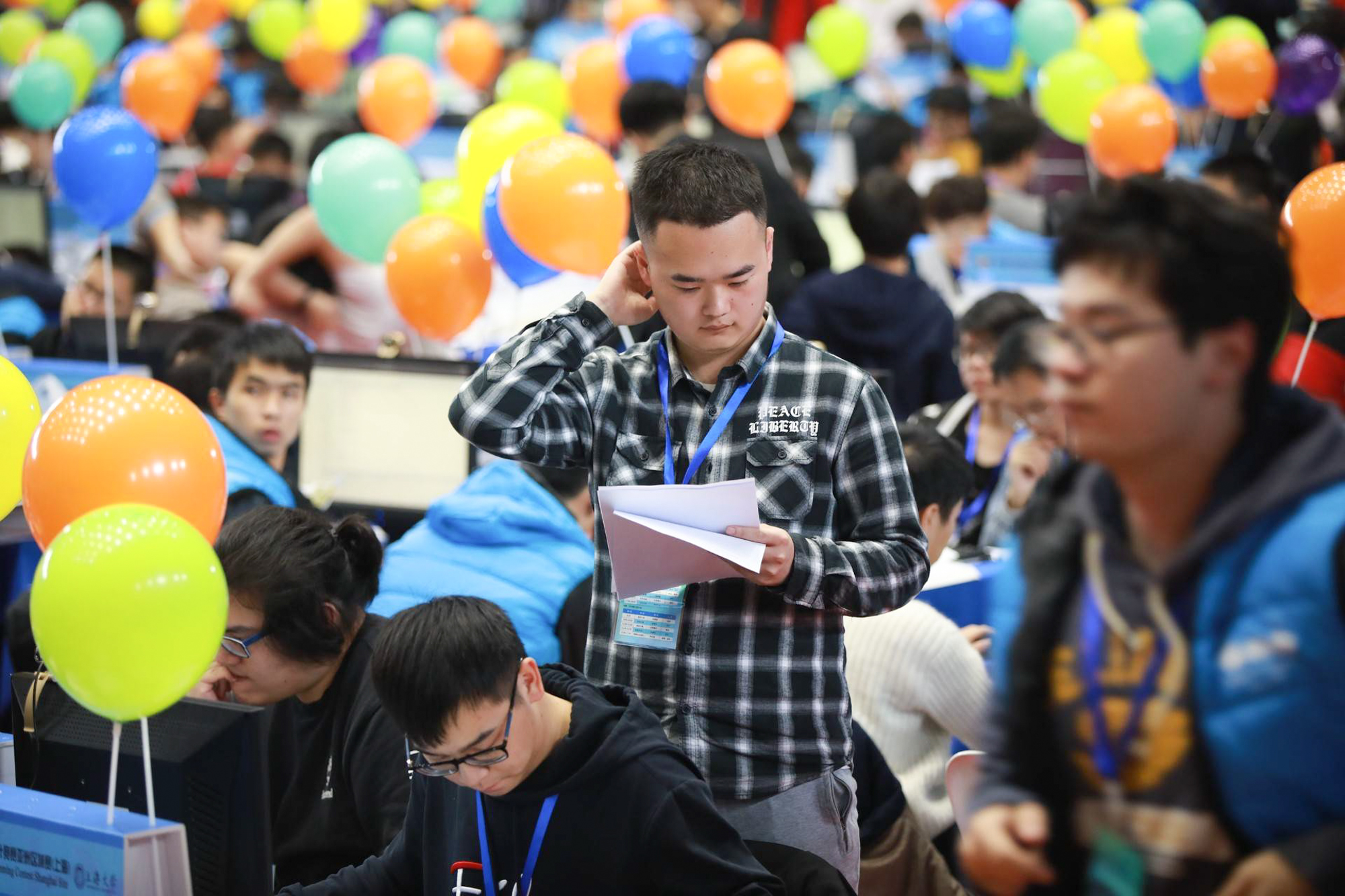 区域赛比赛现场的朱桐(中)
