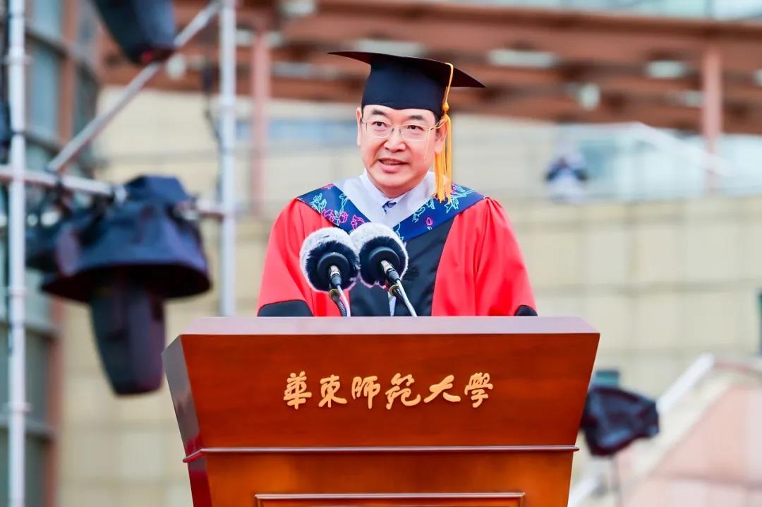 2021届澳门永利皇宫官网入口毕业典礼上,城市与区域科学学院院长杜德斌教授作为教师代表致辞