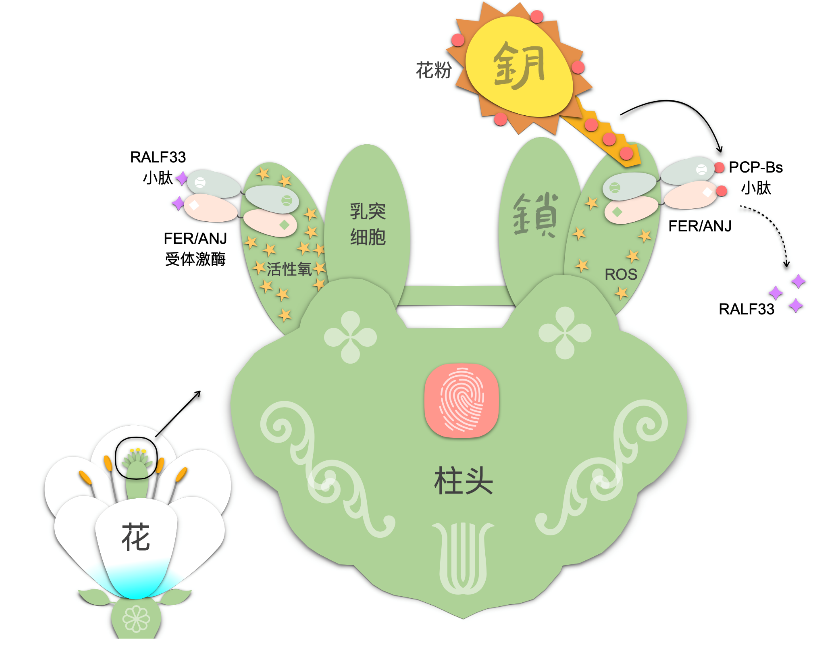 为此,研究团队建立起一整套研究花粉-柱头相互作用的实验体系,包括精准的花粉水合观察体系,柱头乳突细胞活性氧观察体系,以及多种研究小肽竞争受体激酶的生化实验体系。