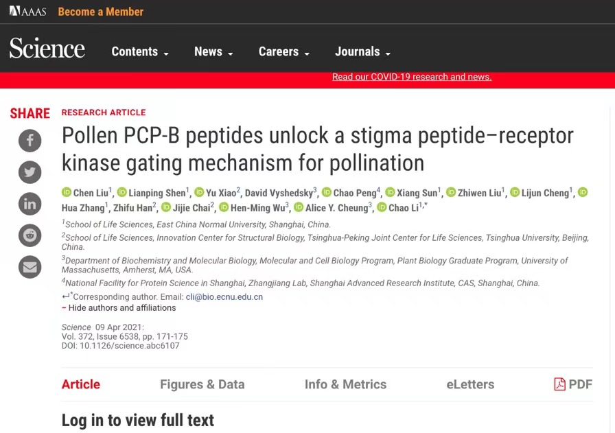 华东师大团队《科学》发文:首次破解植物亲和花粉授粉机制