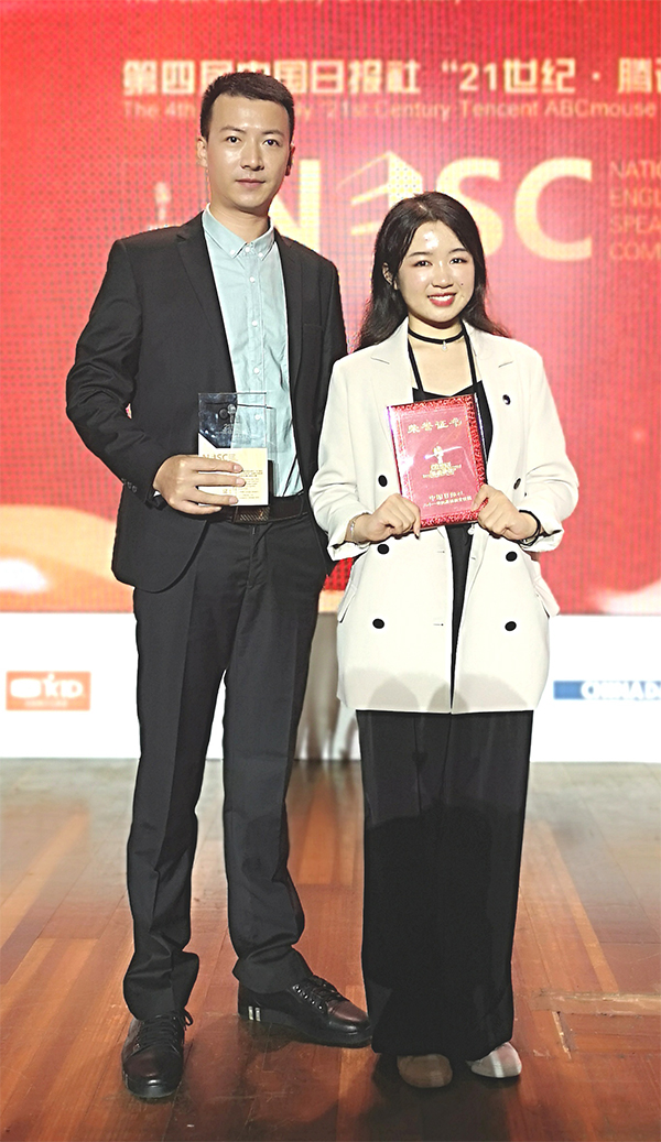 本年度的全国半决赛主题是No person is an island,全国总决赛的主题是Seize the day。王嫣同学凭借真实而鲜活的事例、地道的口语、敏捷的思维阐述了“坚持真实的自我”才是Seize the day的本质,并准确地回答了提问评委的问题,充分体现了我校学生扎实的英语功底、优秀的思辨能力和过硬的心理素质。最终,王嫣同学成功夺得全国季军。同时,她还获得了中国“在乎力”特别奖。