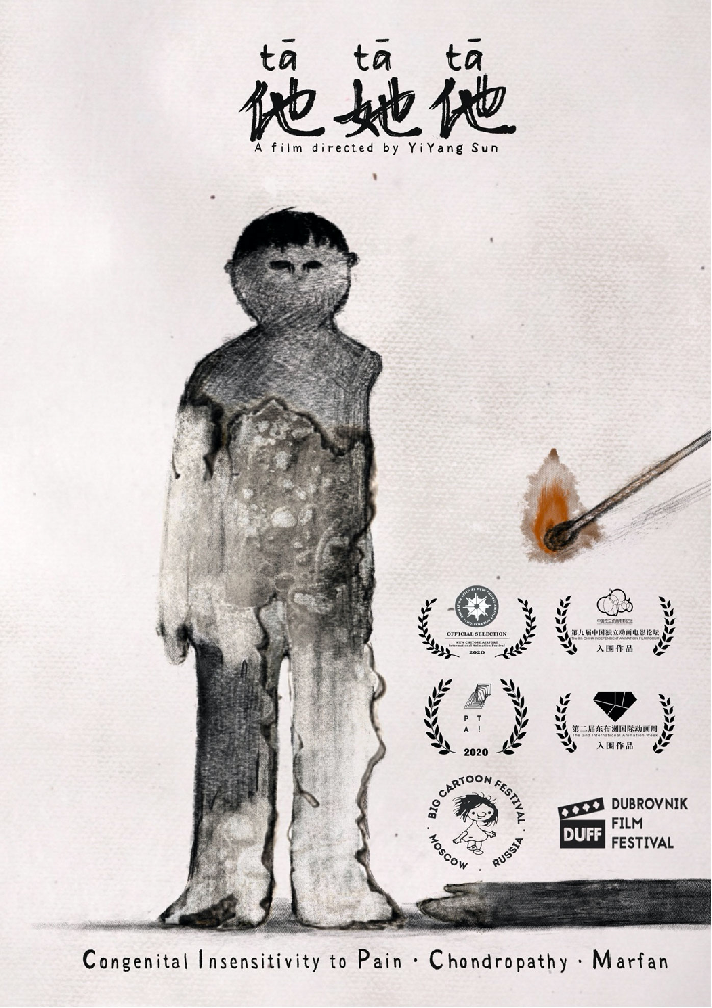 此外,孙逸阳同学作品《他她他》同时揽获多个国内外赛事奖项,包括:第八届全国高校数字艺术大赛全国赛区一等奖、Prime the Animation Festival the winner of the Human Values Award西班牙新人才国际动画节“人类价值奖”、Dubrovnik Film Festival the winner of best open experimental competition杜布罗夫尼克电影节“最佳实验动画奖”、Mexico Big Cartoon Festival 莫斯科卡通动画节入围等、New Chitose Airport International Animation Festival2020日本新千岁空港国际动画节入围、第二届“东布洲国际动画周”暨第九届“中国独立动画电影论坛”入围。