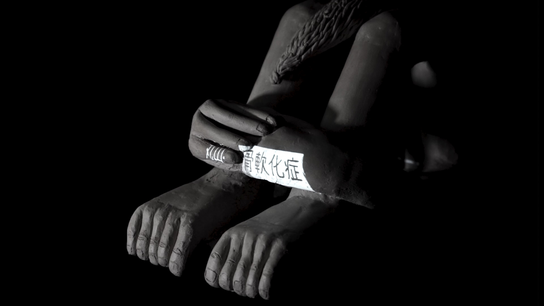 获奖学生动画作品《他她他》基于对先天性无痛症、软骨病、马凡式综合症三种病症的研究,制作了三段纪录片式动画。作者试图把身体作为建立同理心的共有媒介,实现从知觉到个人认知的共情转化。此外,与动画相呼应的雕塑再现了三类病症者的实体形象,成片以投影方式进行视听表达。雕塑作品作为人们对于身体记忆共有连接的媒介,让动画再增加一层触感与联系。这是一件可以实体接触的动画作品,作者希望以此方式增强观众对于三位叙述人在情感上的进一步感知。