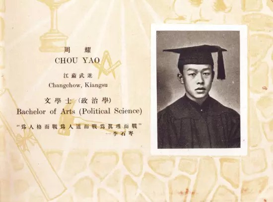 周有光当年就读于光华大学时用名为周耀。他所学的专业是政治学,获文学学士学位。他的恩师李石岑对他的评价是“为人格而战,为人道而战,为真理而战”。