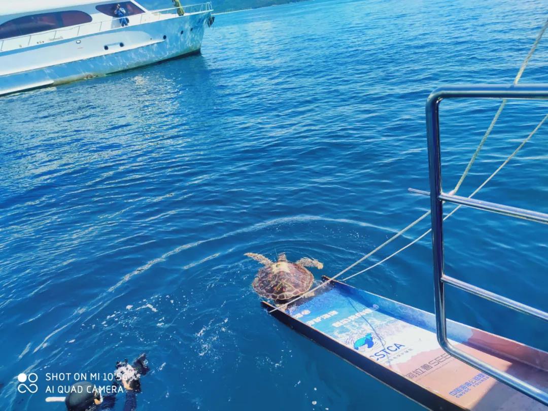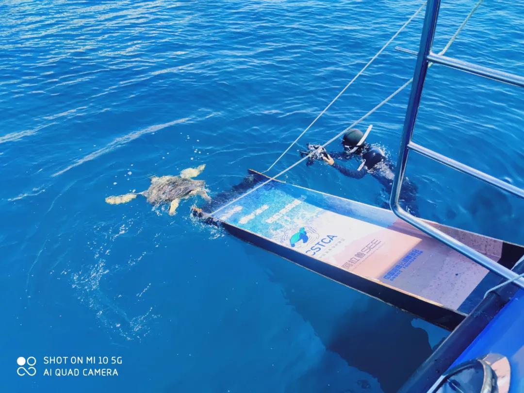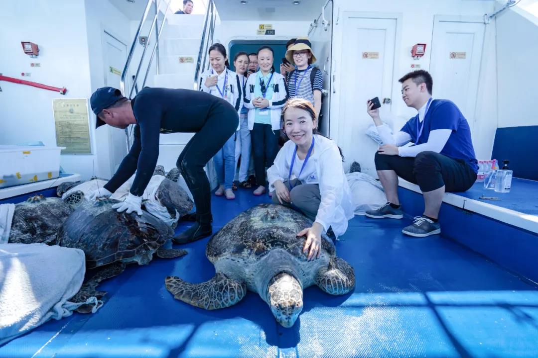 这次,陈珉团队参加了这99只海龟的放归工作。放归前,陈珉团队和海南师范大学、海南热带海洋学院合作对这些海龟进行了健康检查,野放海龟筛选,对放归的个体进行标识。8月9日,他们乘坐放流船前往外海,见证这些健康的大海龟回归大海。