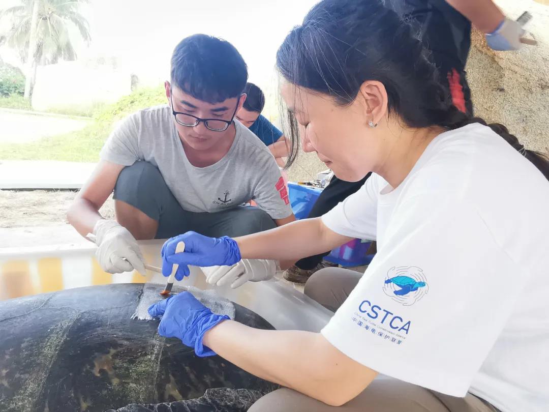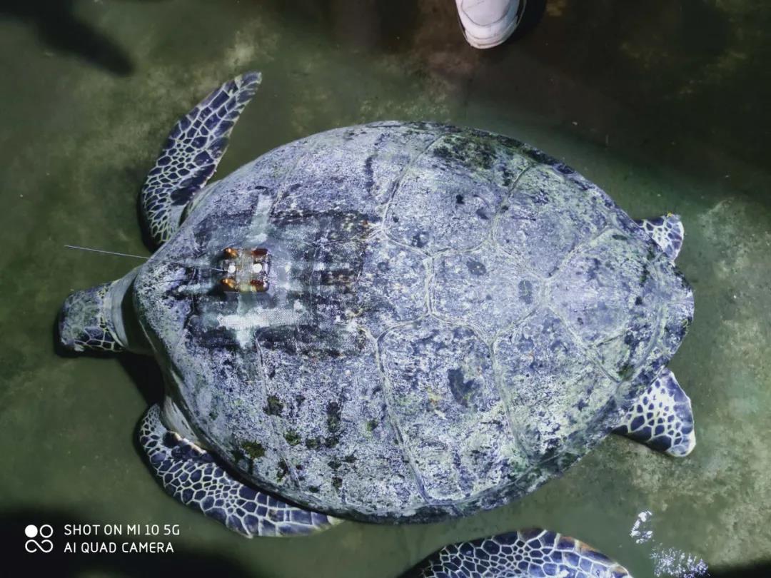 对最大和最健康的部分海龟安装了卫星跟踪设备(陈珉 摄)