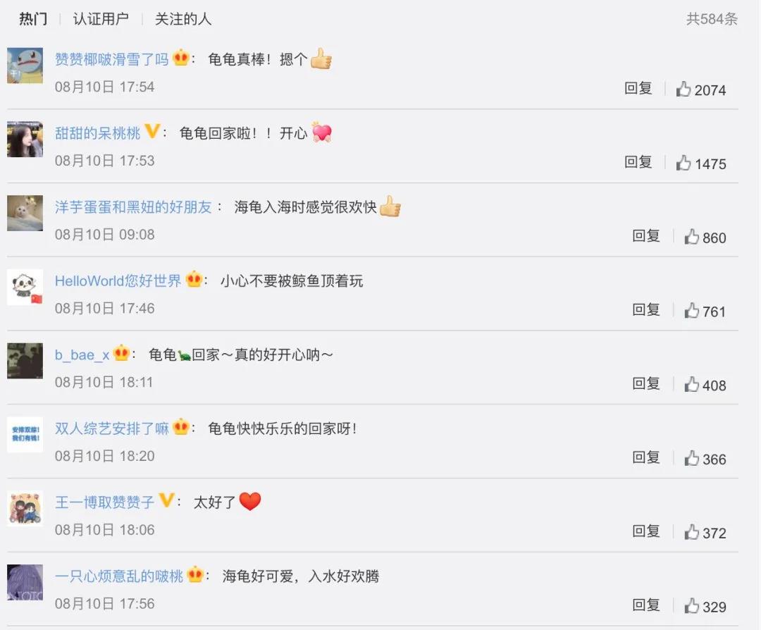 “希望它们以后都能在大海里自由自在的生活,保护每一种海洋精灵!”“龟龟很欢腾,游得真快啊!” “还能玩一次滑滑梯”……当天,99只海龟放归大海的新闻和视频迅速登上微博热搜榜,海龟欢乐的入海姿态引起网友们围观和赞叹!